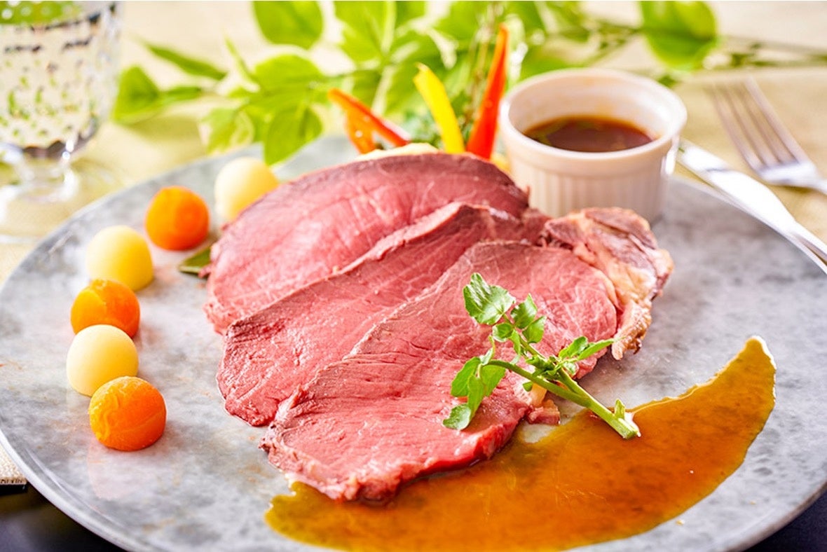 【ローストビーフ~トリュフ香るソース~】はライブキッチンでお客様目の前で切りたてご提供いたします。