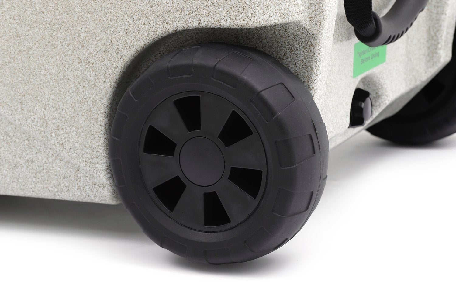 自宅から車までの移動、また目的地の駐車場からもラクに持ち運びができる安定感抜群の大きめキャスターを搭載