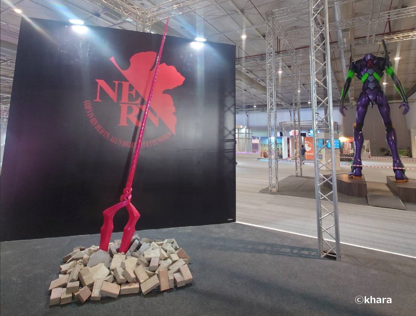 エヴァンゲリオン初号機が投げた「ロンギヌスの槍」がスモールワールズに登場!幾つかの国内イベントで展示された後に、サウジアラビアで行った「ANIME EXPO2022」でも大活躍!サウジアラビアから搬送されてきました。3階のギャラリーA展示エリアの床に刺さっている場所はどこでしょうか。ぜひ見つけてください!