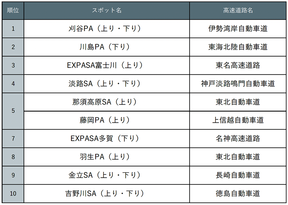 そのほかランクインしたスポットは、豊かな自然が満喫できたり、絶景自慢やハイウェイオアシスの充実、ミニ遊園地があるなど、便利でユニークな施設がズラリと並ぶ結果に。次のおでかけは、ランキング情報を参考に気になるサービスエリア・パーキングエリアを目指して、楽しいドライブ計画はいかがでしょう。
