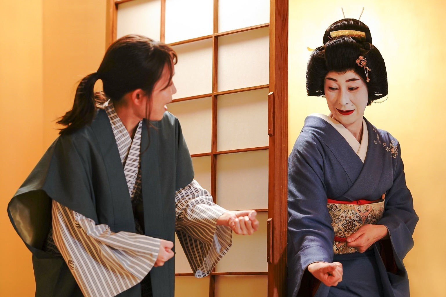 到着時に抹茶をサービス、芸妓さんとのお座敷遊び体験(2時間程度)、1泊2食付き(お部屋食)