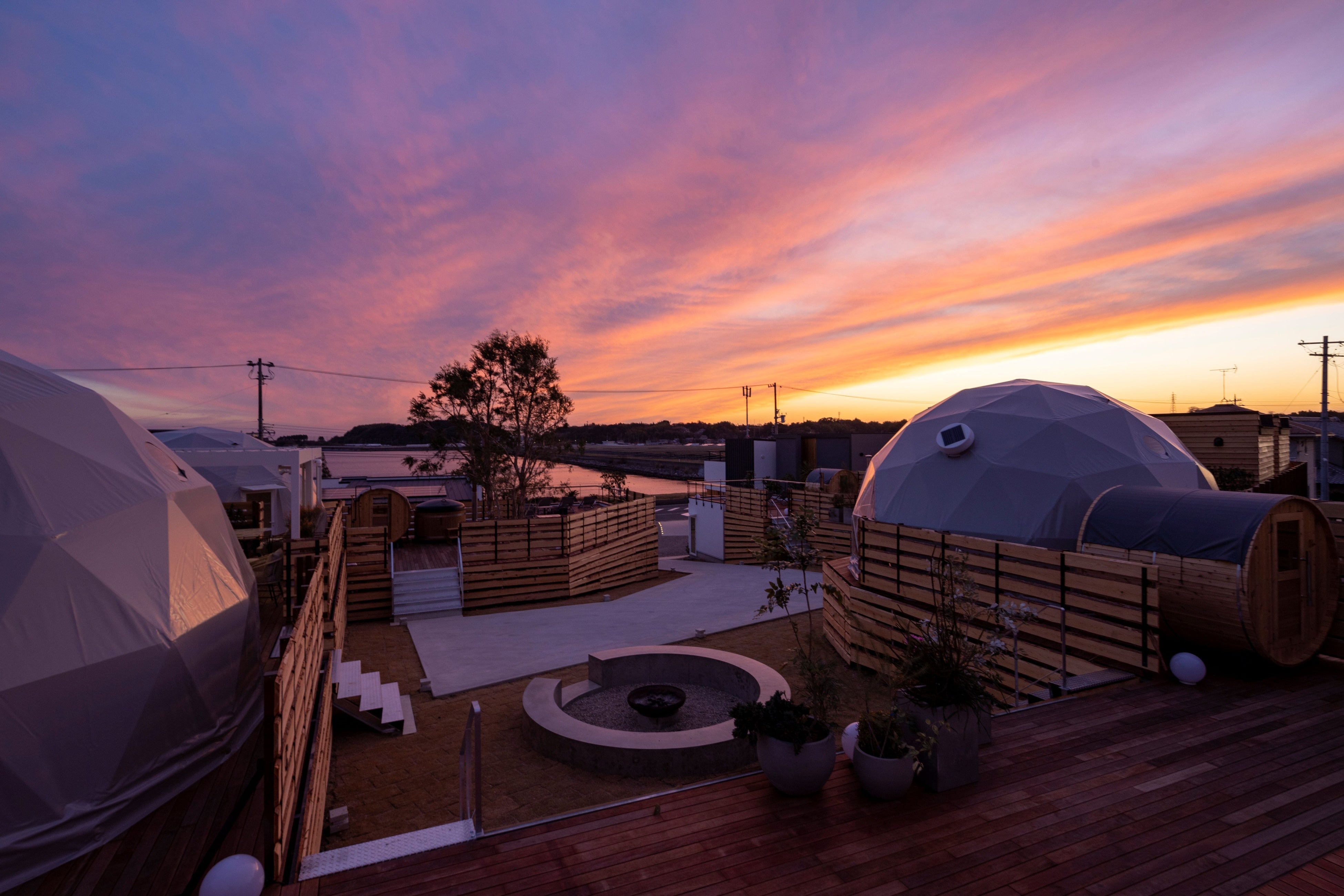 ●パブリックスペース ・ファイヤーピット/焚火を囲んで、新しいコミュニティが生まれます。親子 で薪割り体験やマシュマロ焼きなども体験できます。 ・展望デッキ/ソファに寝転んで、満天の星空と会話してみませんか。