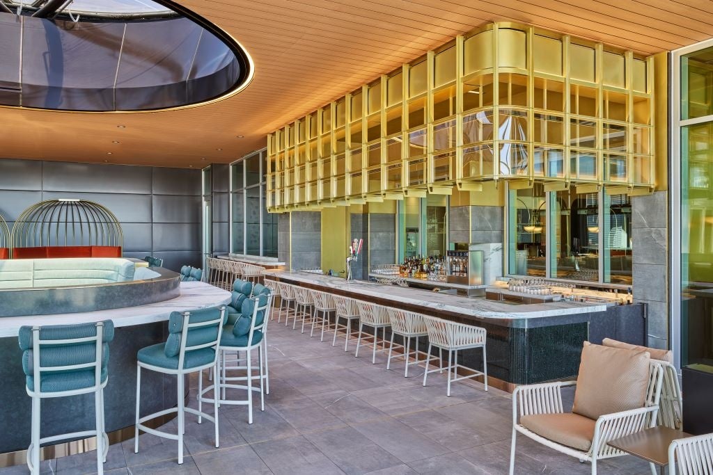 ミネソタ州が「10,000の湖を持つ土地」と呼ばれることから、室内のデザインには、夏の湖の夕暮れをイメージし、セージグリーンのようなアースカラーに、暖かなコッパ―やアンバーの色調を組み合わせた豊かな色調を用いています。また、年間を通して利用できる全天候型のスカイデッキ(110席)を設置しています。このスカイデッキでは、年3回葉が生え変わる植物の壁と、頭上の天窓から差し込む自然光を楽しむことができます。