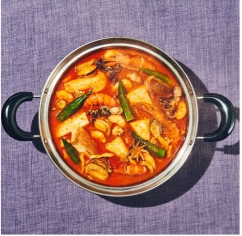 韓国の鍋料理“純豆腐”の専門店として大人気の「東京純豆腐」とコラボレーションした商品、「韓流海鮮チゲポット」。東京純豆腐の旨辛スープと特選シーフードの組み合わせが文句なしの大正解。鍋の〆は、韓国では定番のラーメン麺である“サリ麺”を入れてプデチゲ風にするもよし、白米を入れて韓国風おじやにするもよし、お好みで味わいの幅も広がります!