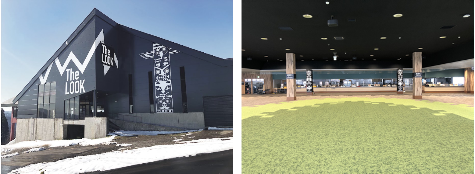 4月29日オープンのThe LOOKの壁面には、Alpen Outdoorsシンボルのトーテムポールが描かれ、キャンプ気分を盛り上げます。400人収容可能な室内もアウトドアテイストにリニューアルし、有名メーカーの最新テントの展示も予定しています。