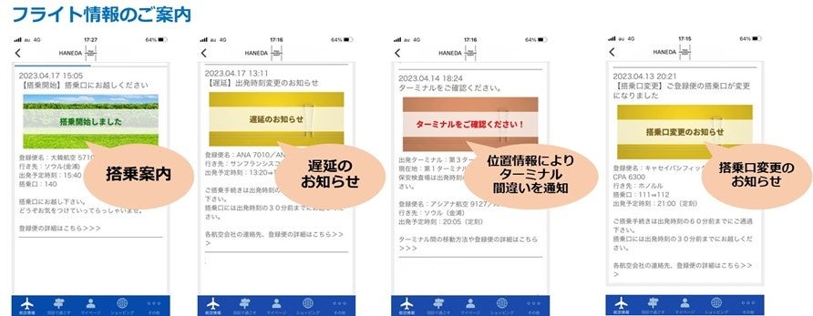 最新の運航情報をもとに搭乗までのご案内をする「マイフライト登録」と搭乗前後の時間をより快適にお過ごしいただくための「羽田空港内の過ごし方提案」に国際線のフライトを登録できるようしたことで、免税品や日本のお土産を販売している店舗のご案内が届くほか旅の支度で忘れ物などの不安を解消するための持ち物チェックリストなどの機能も搭載しました。