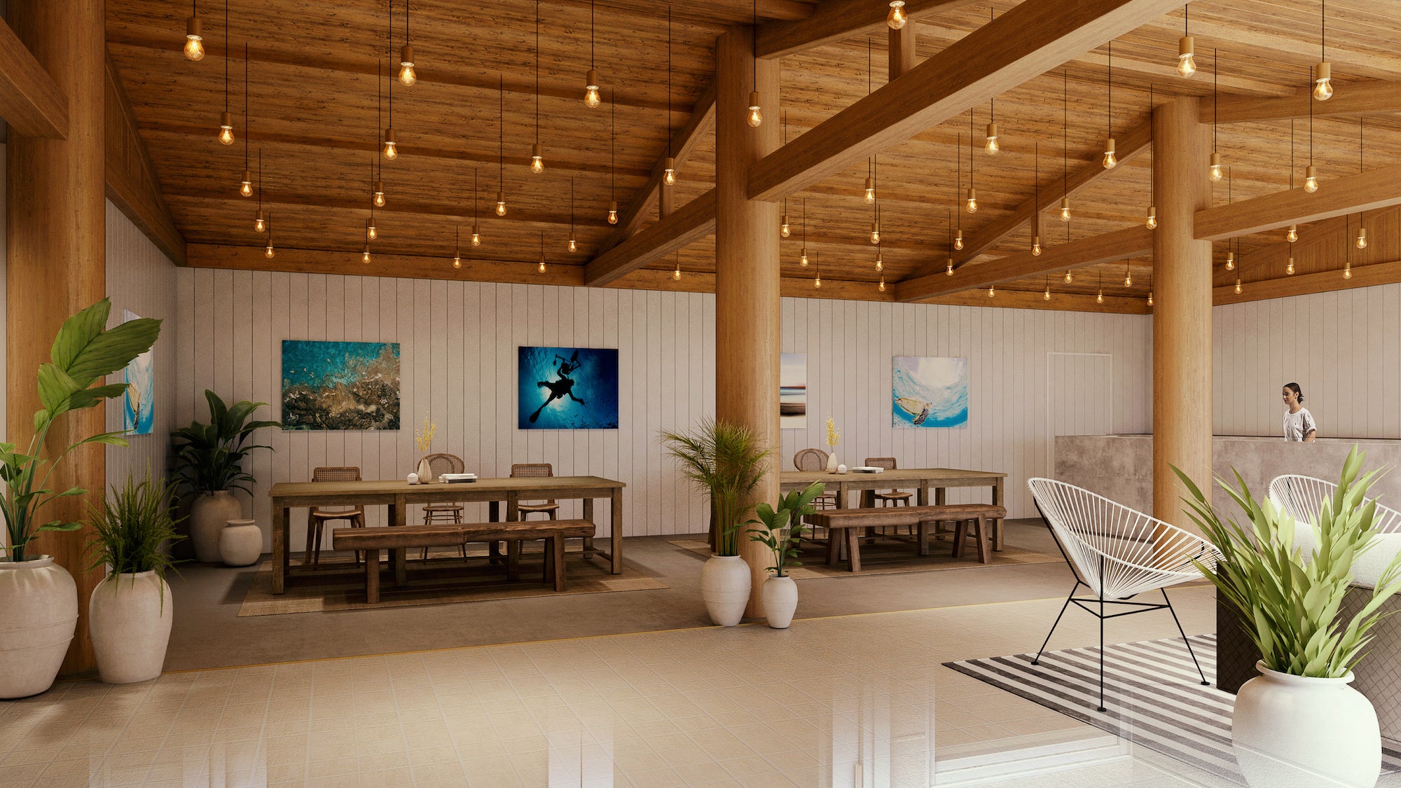 与論島でも人気の高いスキューバダイビング。新設されたダイビングクラブハウスには、シャワー、更衣室、乾燥室をはじめ、休憩スペース、ランドリーなどがあります。木を内装に施した開放的で落ち着くスペースでダイビングの前後の準備時間と休憩時間をお過ごしいただけます。