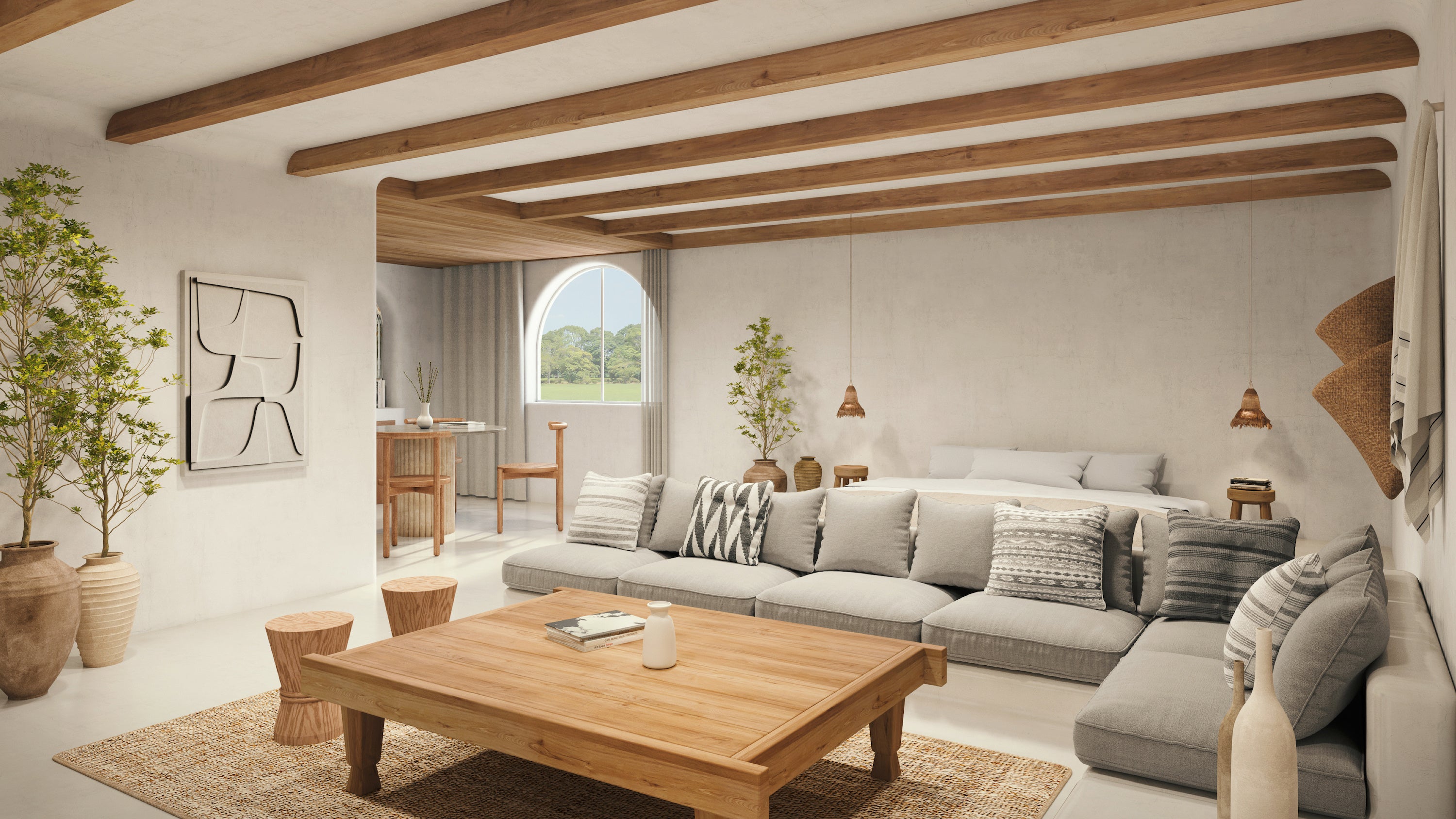ビーチサイドのヴィラエリアでは白・青・灰色を基調としたギリシャの景観をお楽しみいただけます。1Fにはダイニング、リビング、キッチン、バスルーム、2Fにはダブルベッドが2台あるベッドルームがあります。ジャグジー付きのヴィラもあり、のどかな滞在をご堪能いただけます。