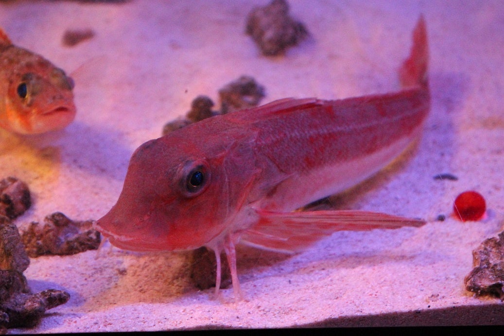月替わりでさまざまな生きものの魅力を伝える「マンスリー水槽」では、頭部が硬い骨質の甲で保護され、頭が硬いことから名がついた「カナガシラ」について紹介します。「カナガシラ」は、大きく色鮮やかな胸ビレや胸ビレの下部にある脚のように見える鰭条(きじょう)が特徴です。