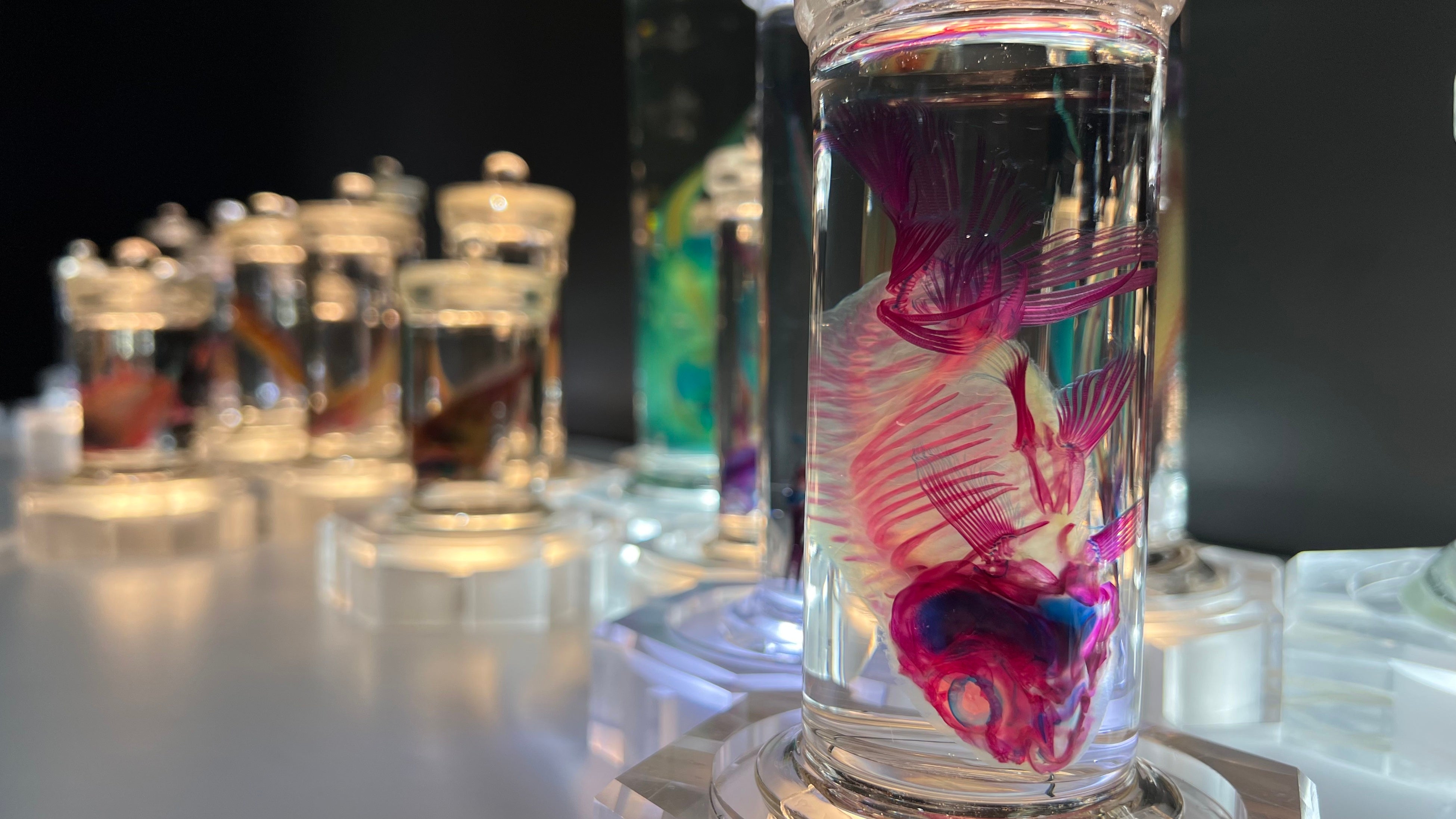 骨格を立体的に観察できる学術的な「標本」でもあり、生きものの造形美を見せる「アート」でも ある“透明標本”を展示し、生物の神秘的な魅力を体感していただけます。