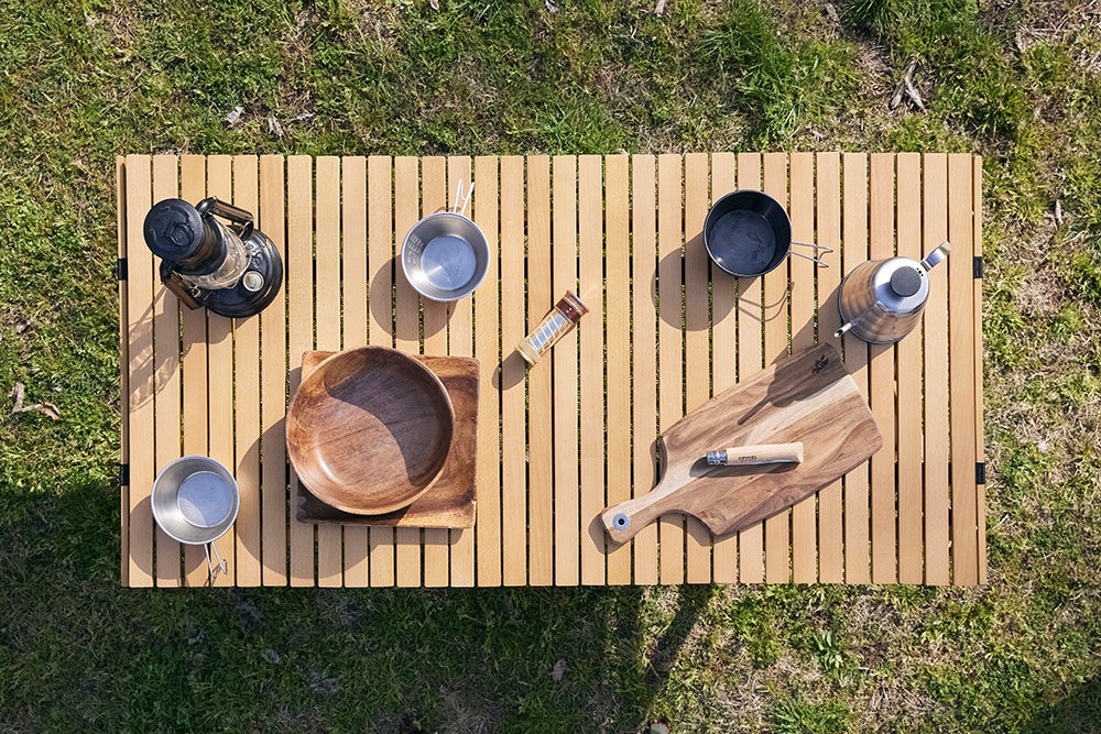 キャンプシーンには必須のフォールディングテーブルとフォールディングチェアの2型を、URBAN RESEARCH DOORSの目線でライフスタイルに合わせて仕様変更し、ニューリリースいたします。