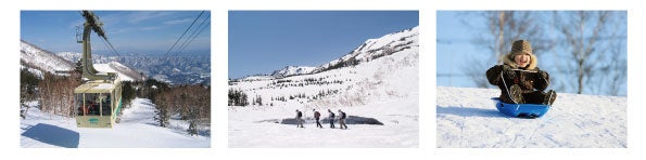 また、ゴンドラリフト(乗車時間20分/6人乗り)とロープウェイ(乗車時間7分/71人乗り)を乗り継いだ北アルプスの麓に広がる中部山岳国立公園「栂池自然園」(標高1,860m)には、まだ約2mもの残雪がある大雪原で、スノーシューハイキングや雪遊びをお楽しみいただけます。
