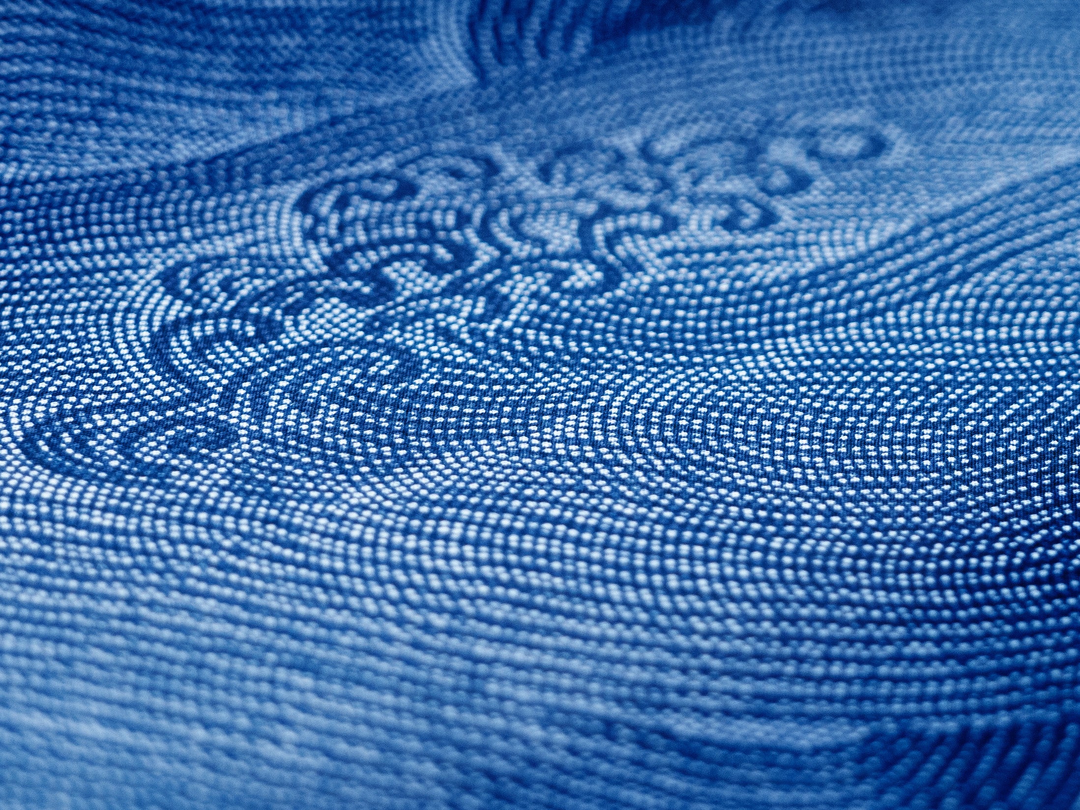 「長きに渡り受け継がれてきた東京の技術と歴史を尊重しながら、メズム東京ならではの時代に即した美的観念を追求しました。 江戸小紋による『繊細な波模様』と、シルクによる『艶やかミッドナイトブルー』の調和をぜひその目でお確かめください。」