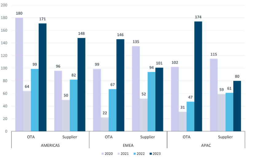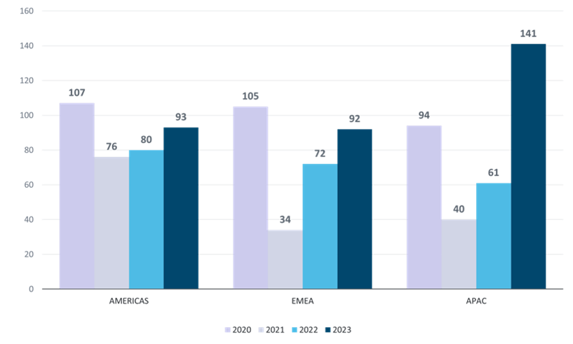 – APAC(アジア太平洋)地域は2年以上続いた移動制限が解除され、パンデミック中であった2020年の40ポイントから2023年には141ポイントと歴史的な伸びを記録