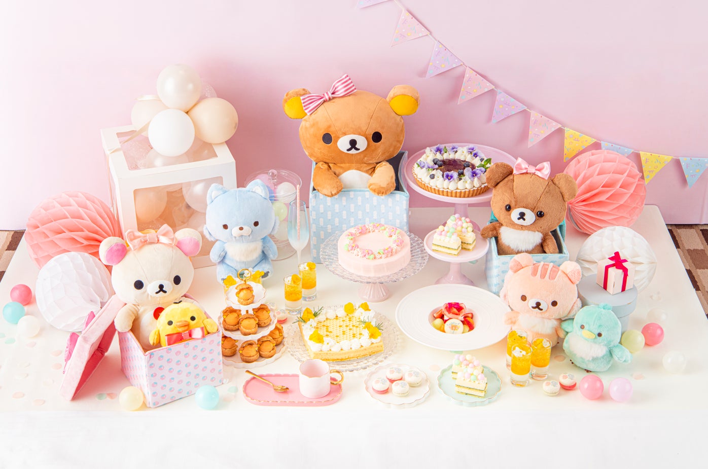 リラックマたちの可愛らしいスイーツのほか、「はちみつの森のおともだちとお祝い!カラフルマカロン」も加わり、魅力的なスイーツメニューをご用意いたしました。パティシエがこの日のためだけに創作したスイーツをお楽しみください。