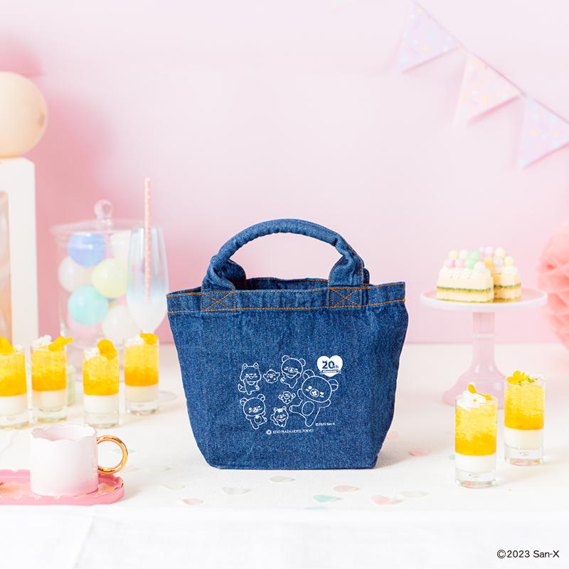 リラックマの20周年のお祝いにふさわしいイラストテーマ「にこにこHappy for you」のイラストがかわいらしい、当イベントでしか手に入らない限定オリジナルデニムトートバッグをご用意いたしました。一緒にお出かけしたくなるオシャレなデニムトートバッグです。