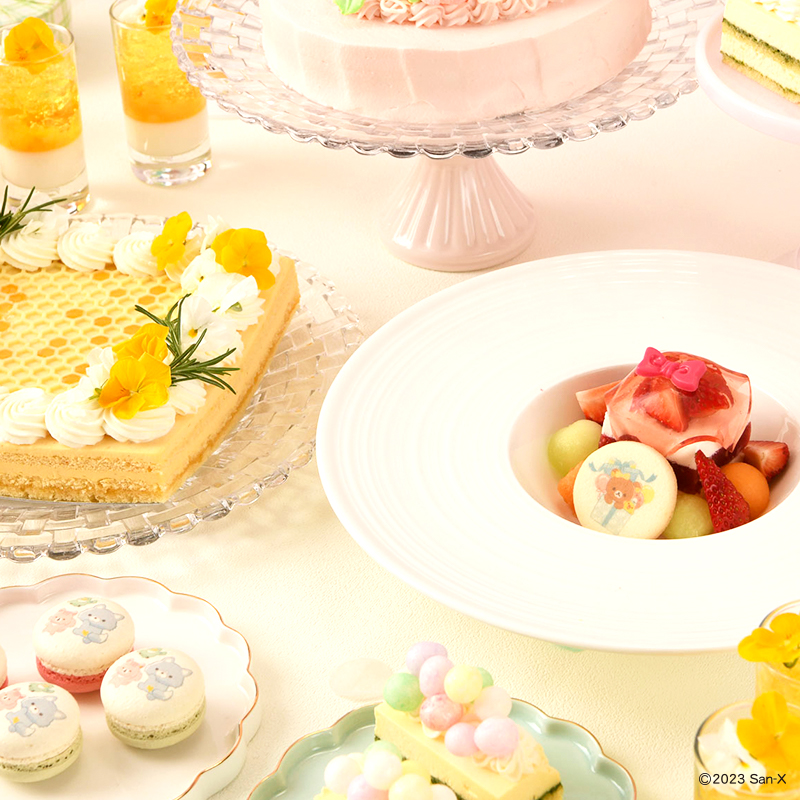 リラックマたちの可愛らしいスイーツのほか、「はちみつの森のおともだちとお祝い!カラフルマカロン」も加わり、魅力的なスイーツメニューをご用意いたしました。パティシエがこの日のためだけに創作したスイーツをお楽しみください。