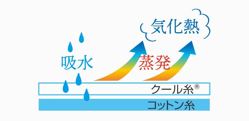 冷感度約3倍の特殊冷感「クール糸(R)」としっかり汗を吸水するコットンの裏地で、気化熱を効率よく発生させるガーゼの構造に。