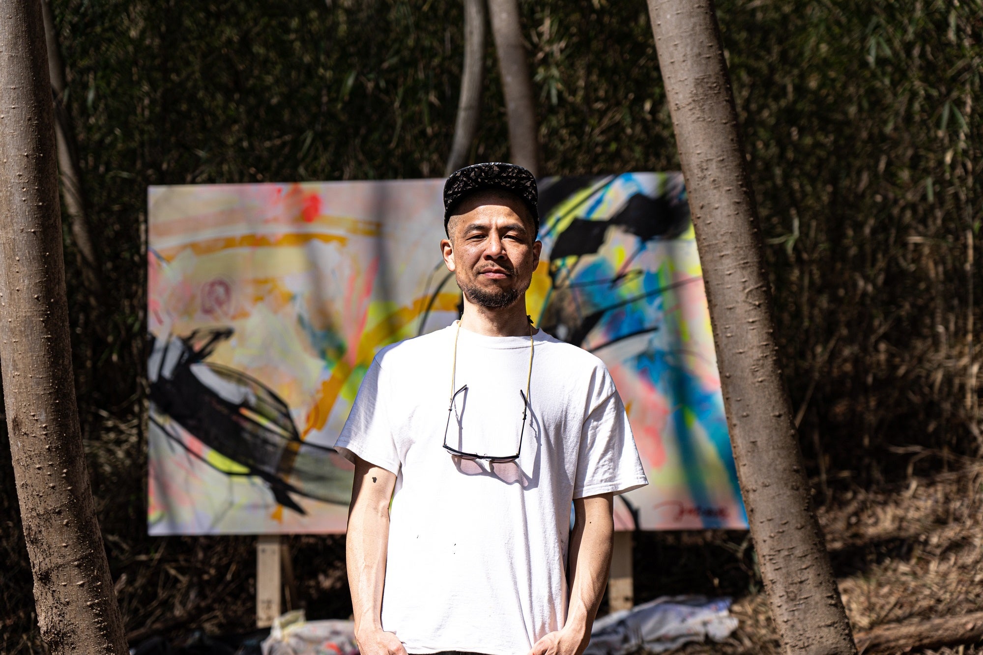 第1弾となる2023年のコラボアーティストはJUN INOUE(ジュン イノウエ)さん。アメリカのナイキ本社への壁画制作やパリコレクションブランド「MIHARAYASUHIRO」のコレクション舞台をはじめ国内外でご活躍されている現代アーティストです。今回のコラボでは、JUN INOUEさんが本プロジェクトのために描き上げたテキスタイルデザインのアイテム9点を2023年7月7日(金)より限定販売します。今年の夏は、大自然のキャンバスに個性あふれる彩りをプラスして、いつもとは一味違うアウトドアをお楽しみください。
