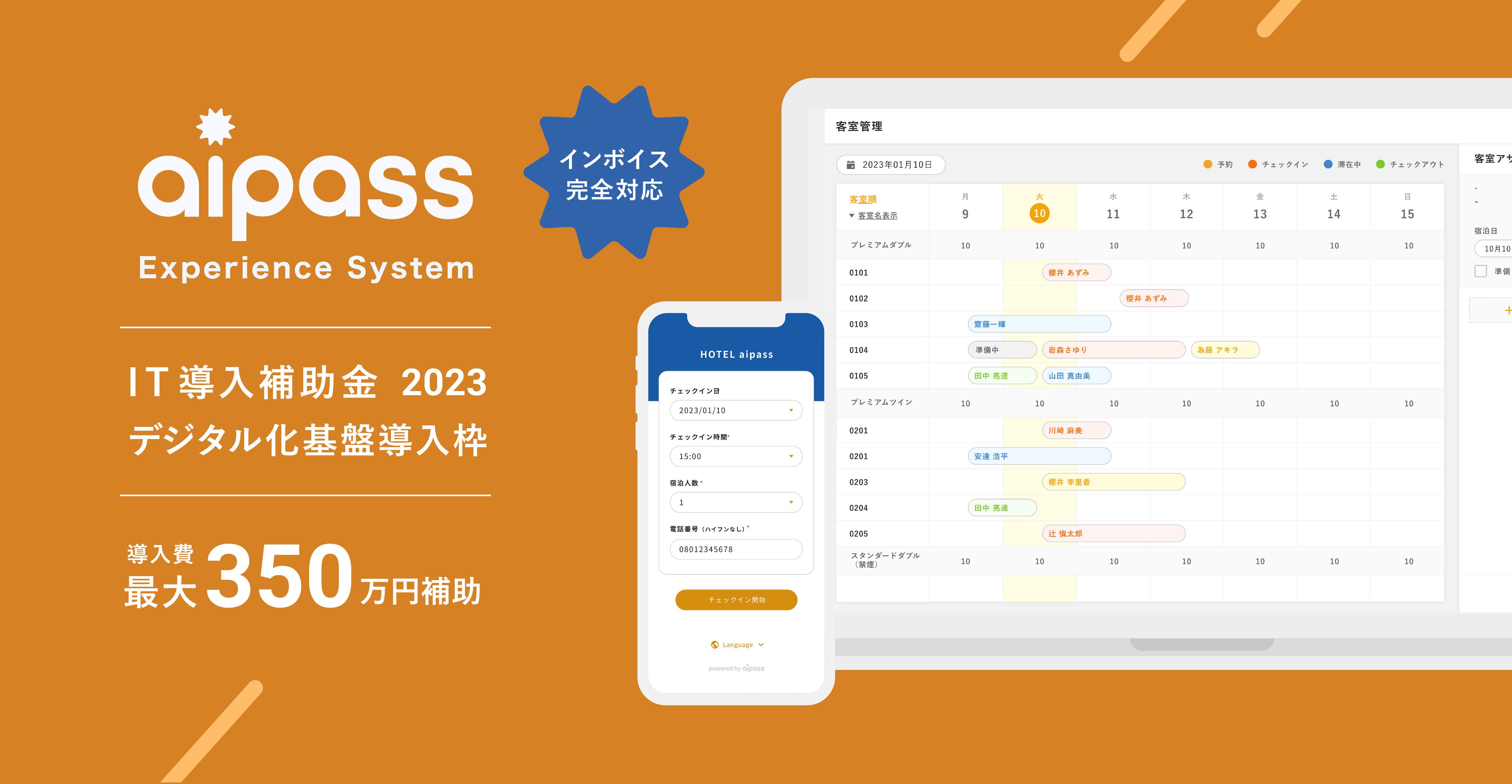 この度『aipass』は、「IT導入補助金(デジタル化基盤導入枠)」の対象ツールとして3年連続で採択を受けました。「デジタル化基盤導入枠」では、中小企業・小規模事業者が導入する会計ソフト・受発注ソフト・決済ソフト・ECソフトの経費の一部を補助し、企業間取引のデジタル化を推進することを目的としており、「領収書発行」機能等のプラグイン費用を最大で「350万円」補助することが可能になります。
