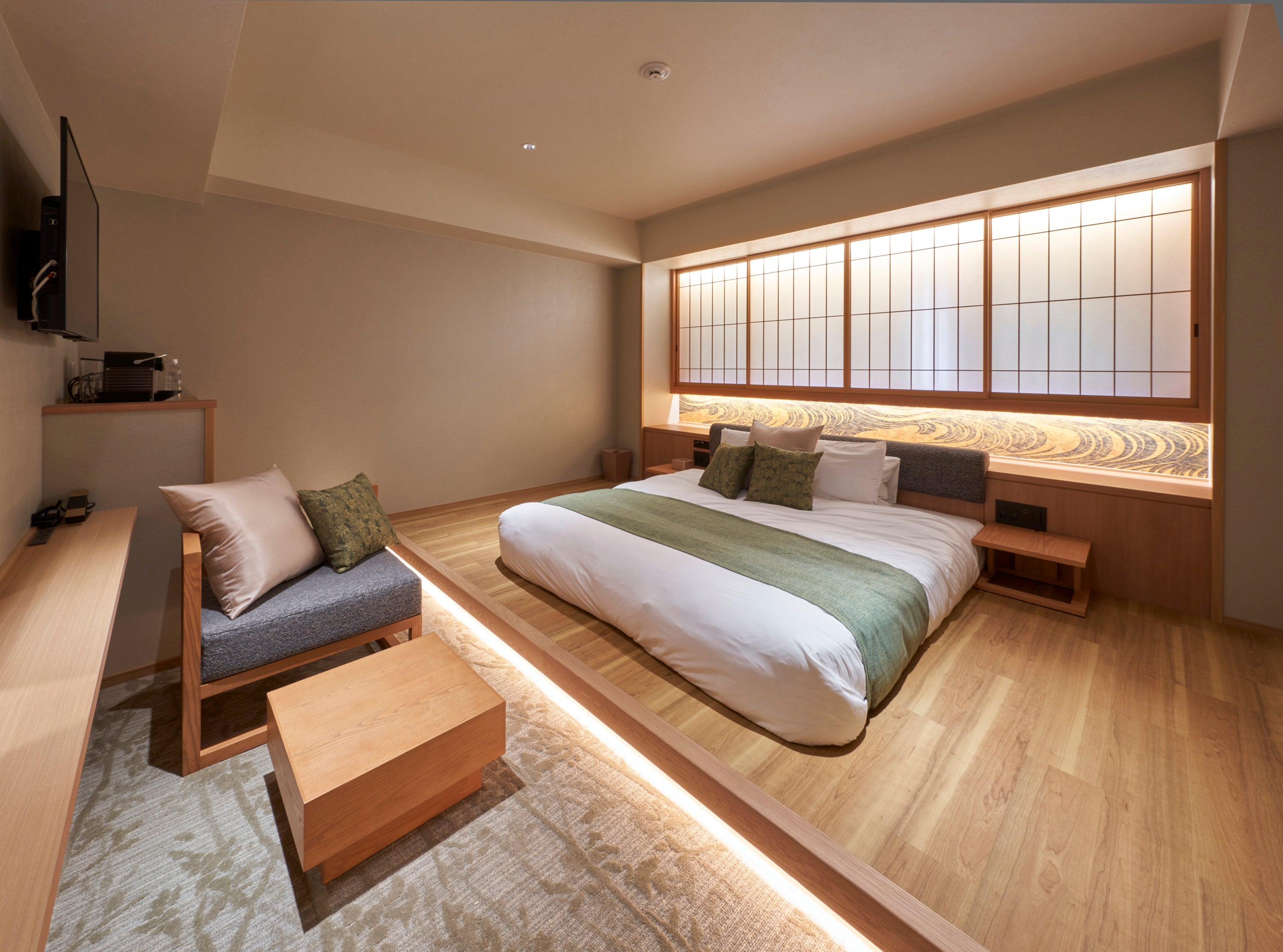 ホテル名の“KAYA”は、1021年から1223年にこの地域に存在し、天皇の邸宅の一つであった「高陽院(かやのいん)」に由来しており、このホテルのために作られた、当グループにおける新たなホテルブランドです。ルームタイプは、ダブル・ツインに加え、広々としたスイートルームやユニバーサルデザインルームを完備。全客室に、シモンズ社製のベッドを採用しております。最大3名まで宿泊できる、ゆったりとした客室は、和の安らぎとモダンな機能美を感じるデザインが特徴です。