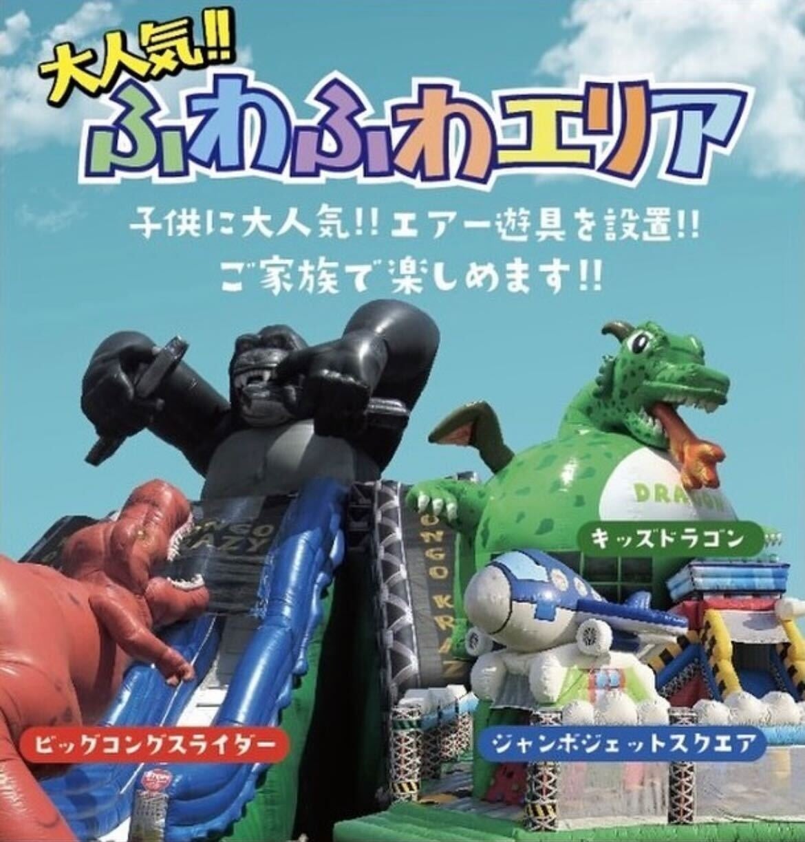 大型エアー遊具を3台設置。ゲームセンターや射的など、“楽しめるコンテンツ”もご用意しております。