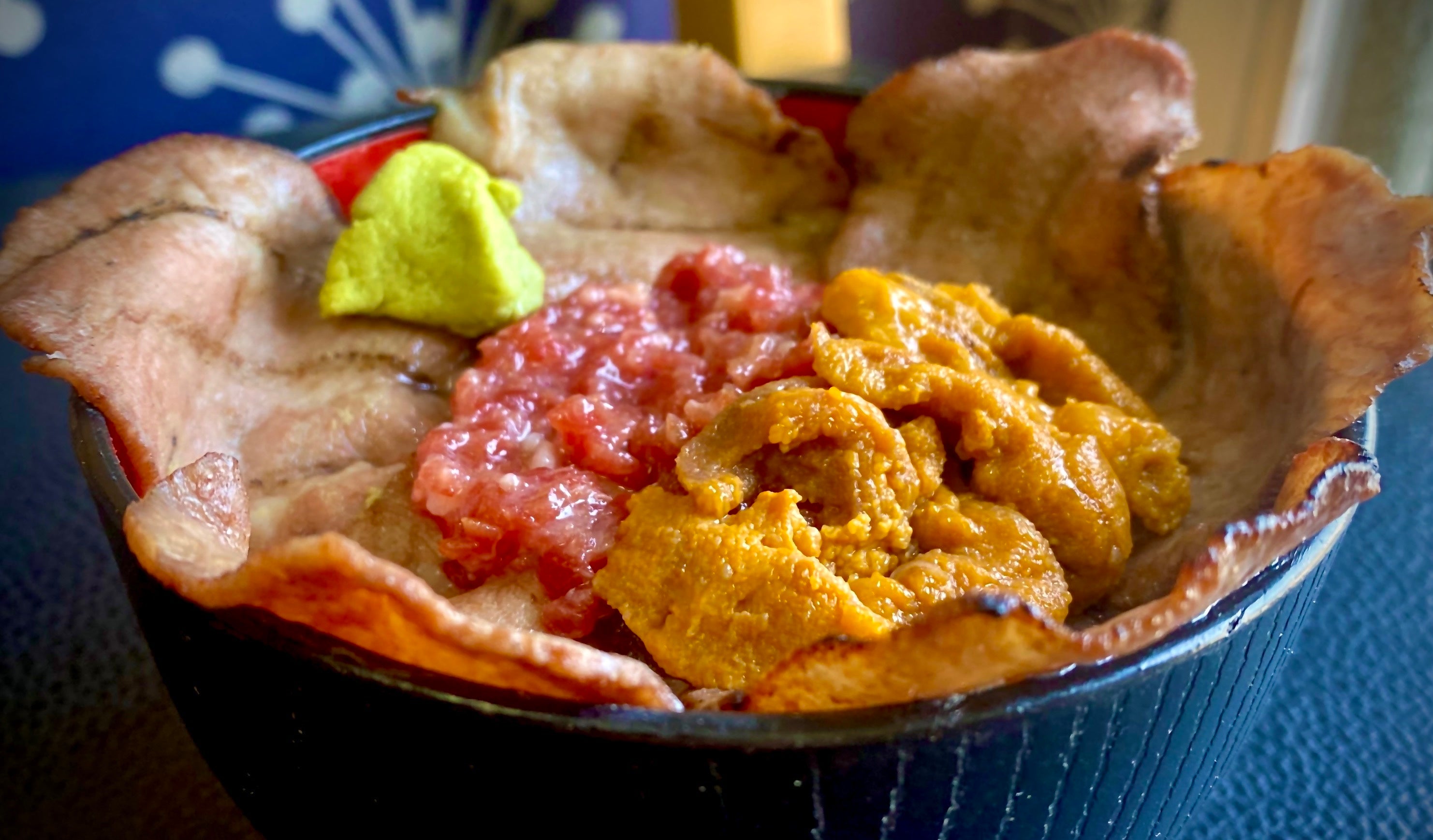 北海道ハーベスト〈牛タン焼フレーク丼(ウニ乗せ)〉