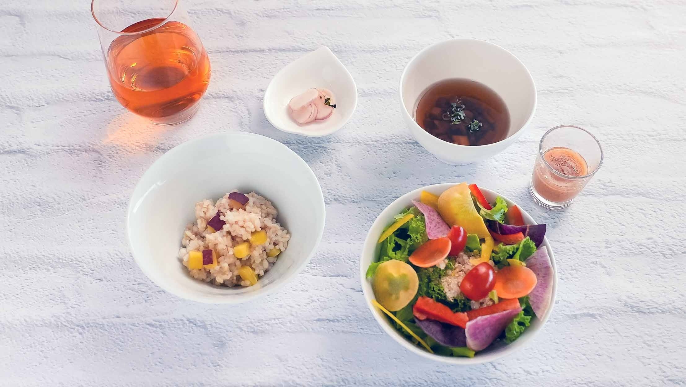 ご夕食に、ホテルシェフ特製のファスティングミールをご用意。玄米ご飯や色とりどりの野菜を味わうサラダ、味付けを最小限に押さえ、素材本来の旨味を活かした茸スープなど、ファスティング中に必要な栄養素を身体に負担なく届けるためのメニューです。お目覚め後には、約60種類のハーブや野菜、果物を発酵熟成させ、酵素を効率的に摂取できるカウンセリング専売の酵素ドリンク「KALA」をご提供いたします。
