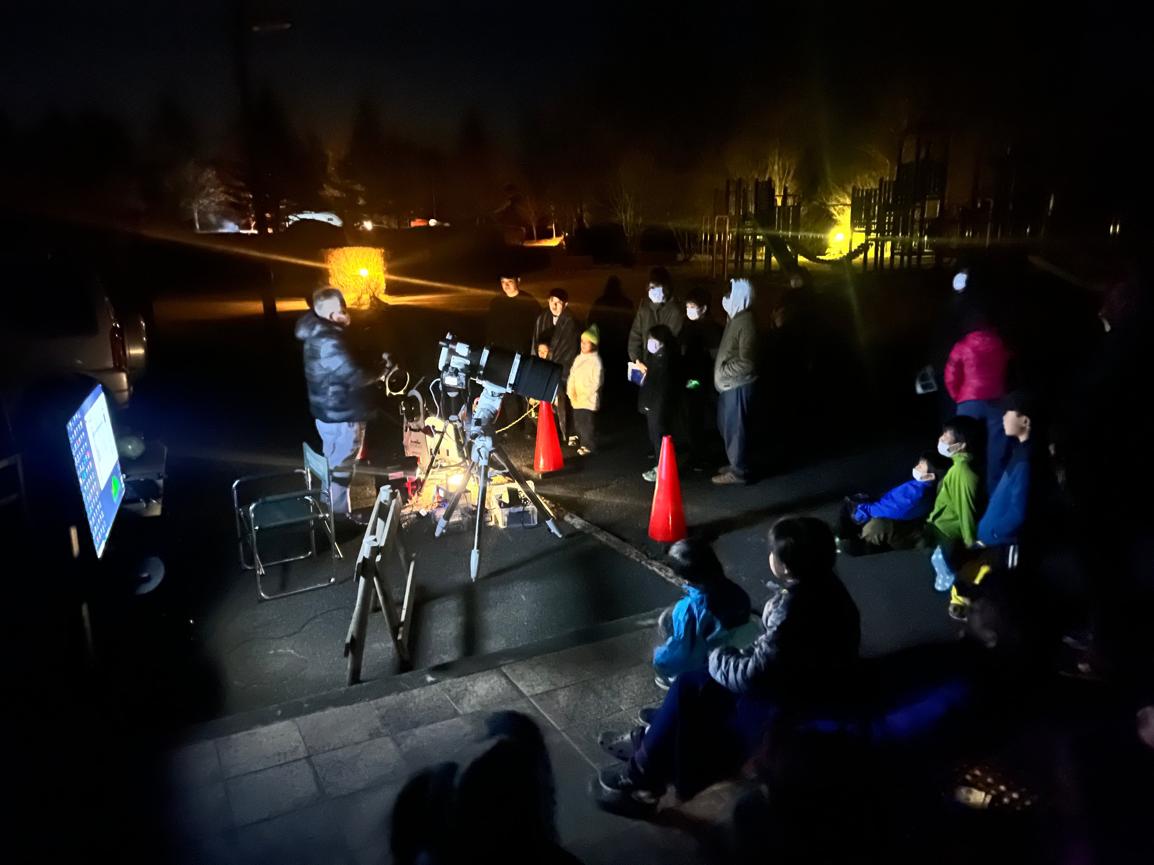 ▼4月22日(土)「春の星座観察会」にて電子望遠鏡を覗く様子