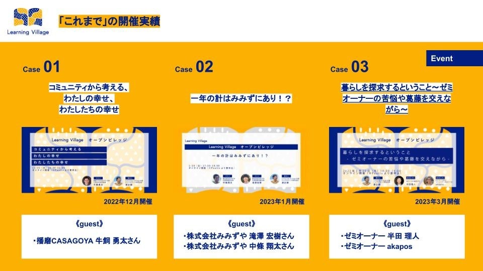 開催したコンテンツを元に、参加者のニーズの反映や参加しやすさ、より一層の魅力度の追求を行なってまいります。