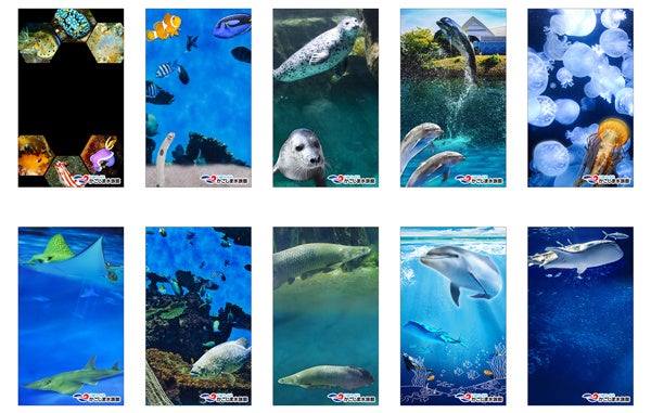 世界最大の魚「ジンベエザメ」、ショーで人気の「イルカ」など、10種類のデザインから好きな背景を選んで、撮影をお楽しみいただけます。