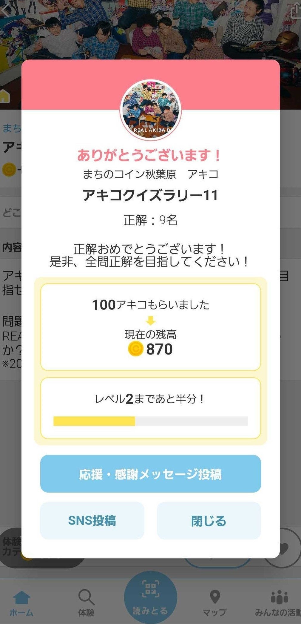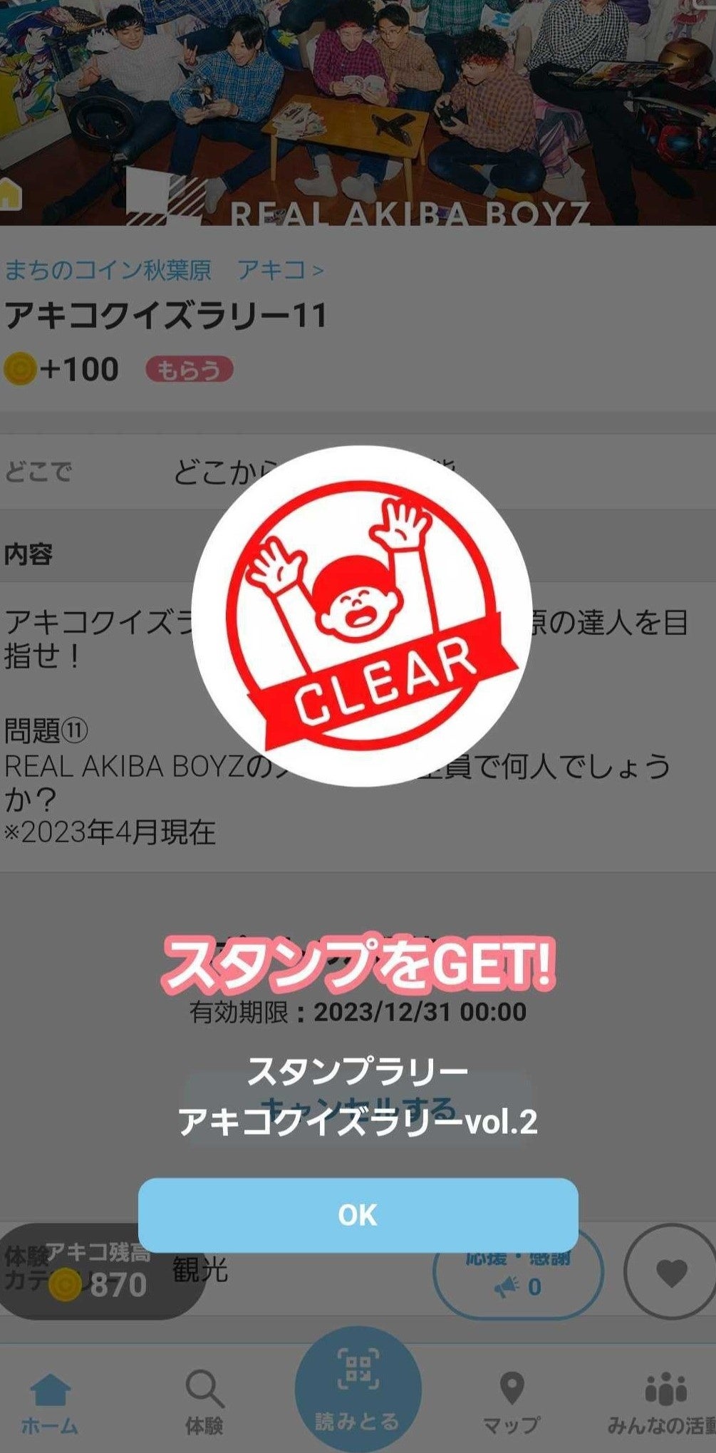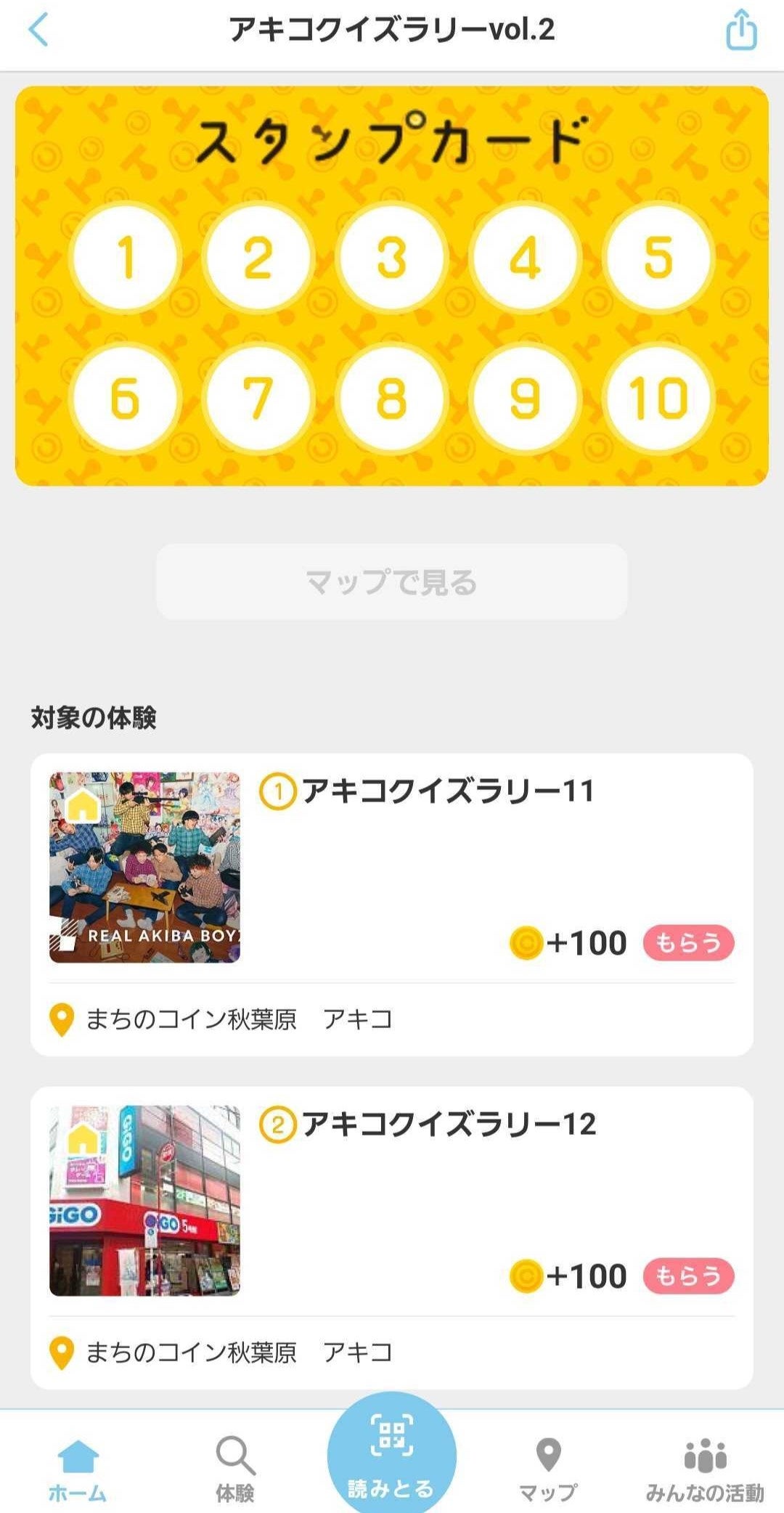 ③スタンプラリークリアで200アキコをゲット
