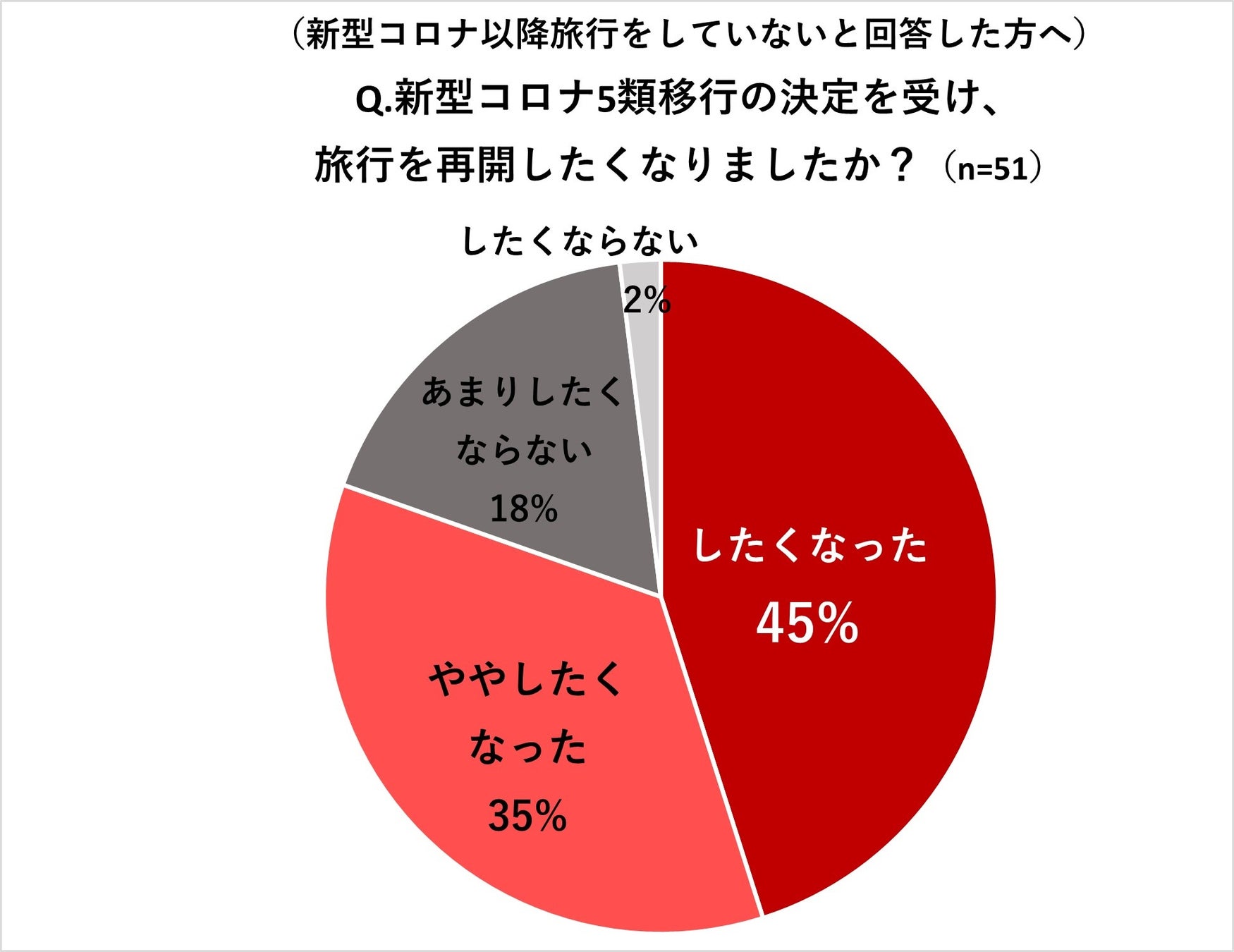 新型コロナ5類移行に関するアンケート調査実施。コロナ禍で旅行離れ、でも「旅行を再開したい」80%