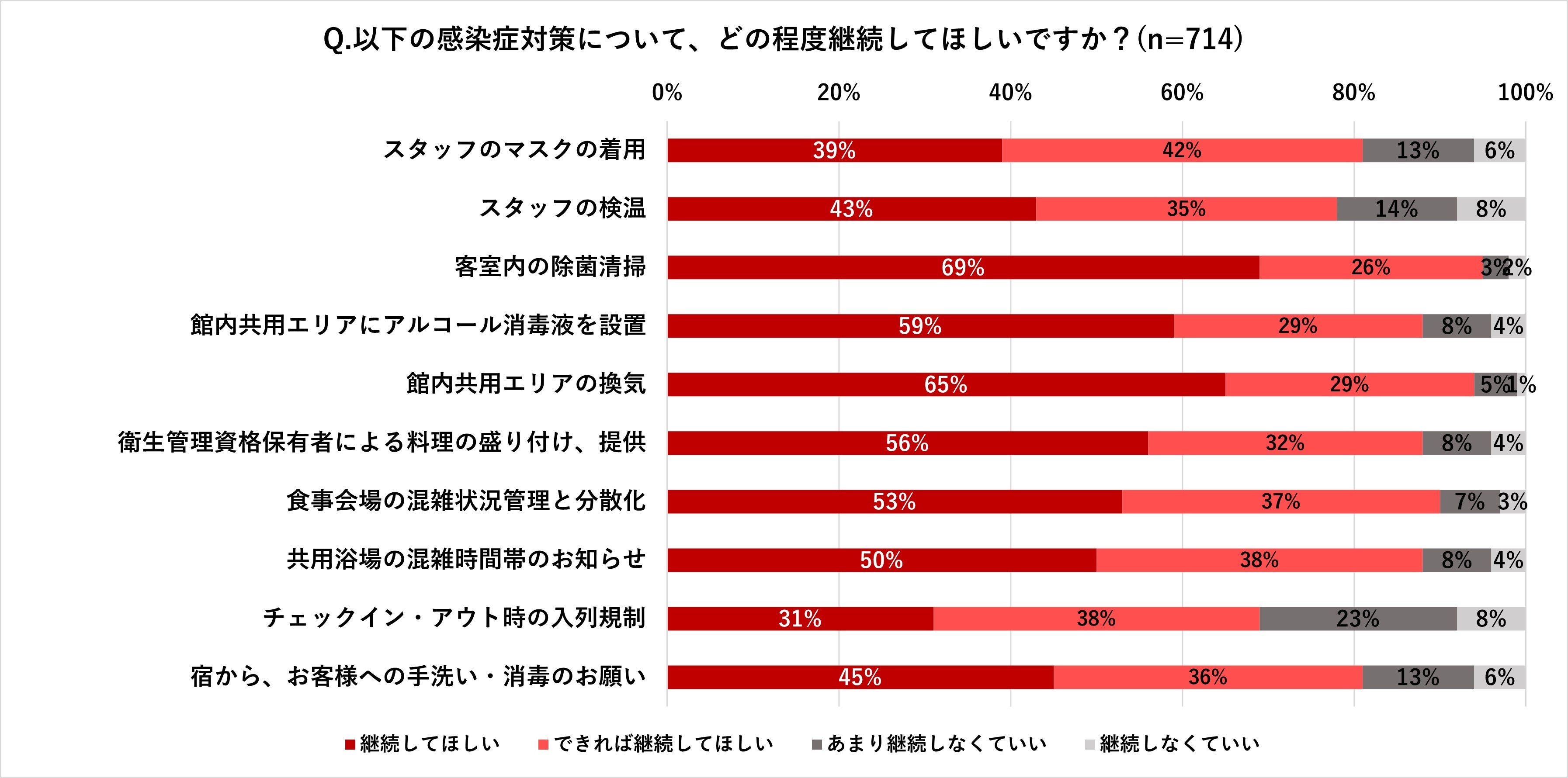 • 宿泊施設や観光施設の感染症対策は91%が継続を希望。一部の対策は今後の定着を希望する声も