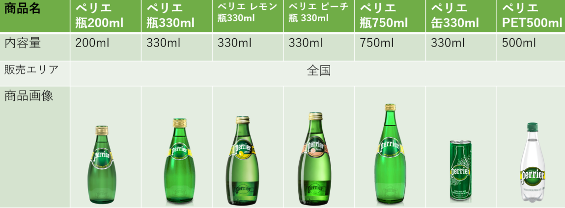 フランスを代表するナチュラルミネラルウォーターです。世界中の家庭やバー、カフェ、ホテル、レストランなどで愛飲されています。その歴史は非常に長く、1億2千万年前の地殻変動により地下水と炭酸ガスが出会い、19世紀に入るとスパでそのスパークリングミネラルウォーターが飲まれるようになりました。1863年にナポレオン3世から許可された生産令を受け、ボトリング・販売したのがペリエの始まりです。世界140ヶ国以上で販売されているペリエは、アートやフランス、ネイチャー、パーティー、バーなどのテーマとシナジーを持ち、とっておきの瞬間を体験していただけるよう、さまざまな活動をしています。また、水源と周辺の環境を保護するための活動にも取り組んでいます。