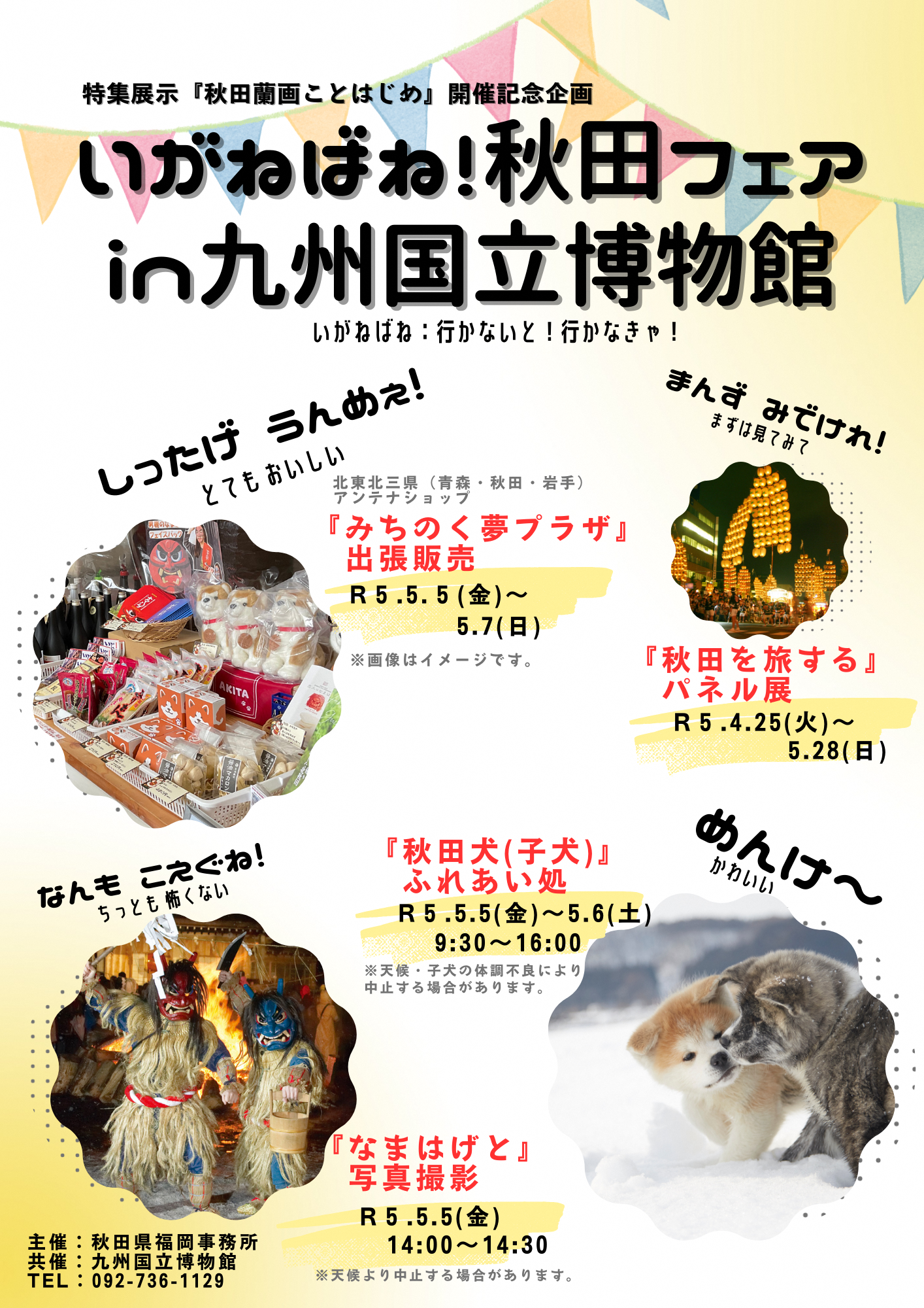 九州国立博物館では、4月29日(土・祝)から始まる特集展示「誕生250年記念 秋田蘭画ことはじめ- それは『解体新書』から始まった -」を記念して秋田県に関係する様々なイベントを実施します。