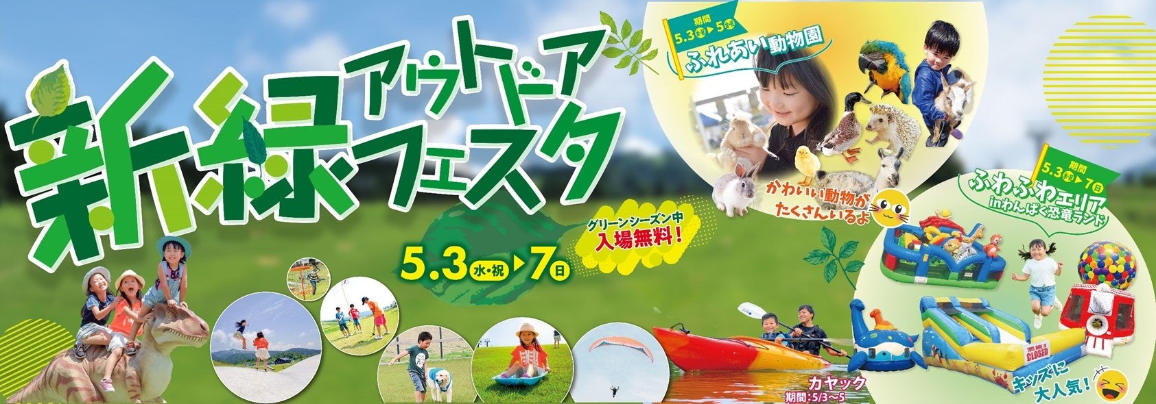 スキージャム勝山では、5月3日(水)より5日間限定で新緑アウトドアフェスタを開催いたします。この新緑アウトドアフェスタでは、バルーン遊具を設置したふわふわエリアや、いのちと触れ合い、いきものの大切さを学べるふれあい動物園、親子で楽しめるカヤック体験など、スキージャム勝山の大自然に包まれながらのびのびとご家族でお過ごしいただけるよう、多様な体験メニューをご用意しました。