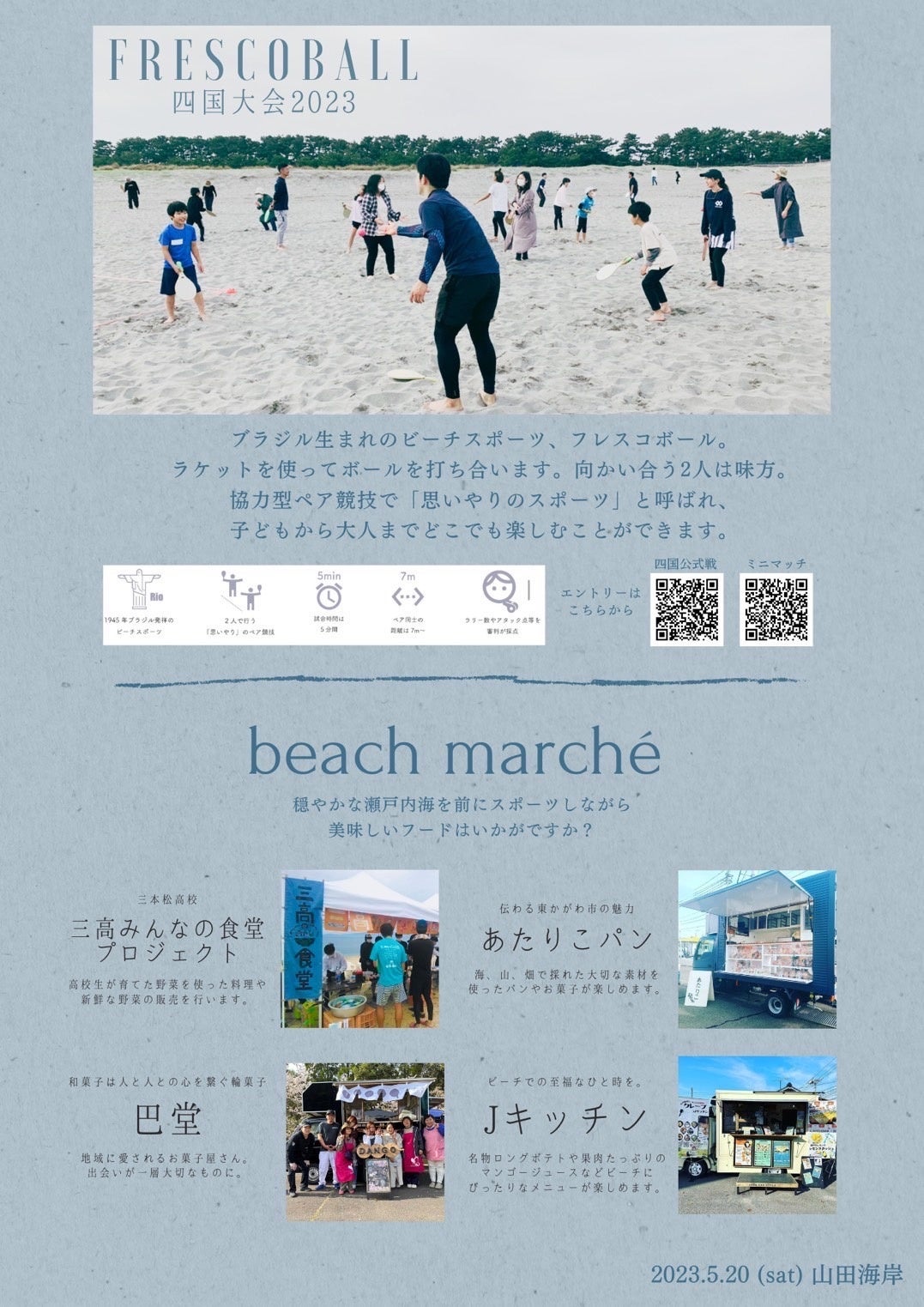 昨年に続き、東かがわ市・山田海岸を舞台に、四国No.1ペアを決める公式戦が開催されます。イベント内容は、四国内ランキングが決定する「公式戦」に加えて、フレスコボール初心者が楽しめるミニゲームを含めた「ビギナーマッチ」も開かれるなど、トップ選手からエントリー層まで裾野を広げた大会に。地域密着の活動も盛んな「四国フレスコボール協会(以下SFBA)」らしい充実の一日となりそうです。