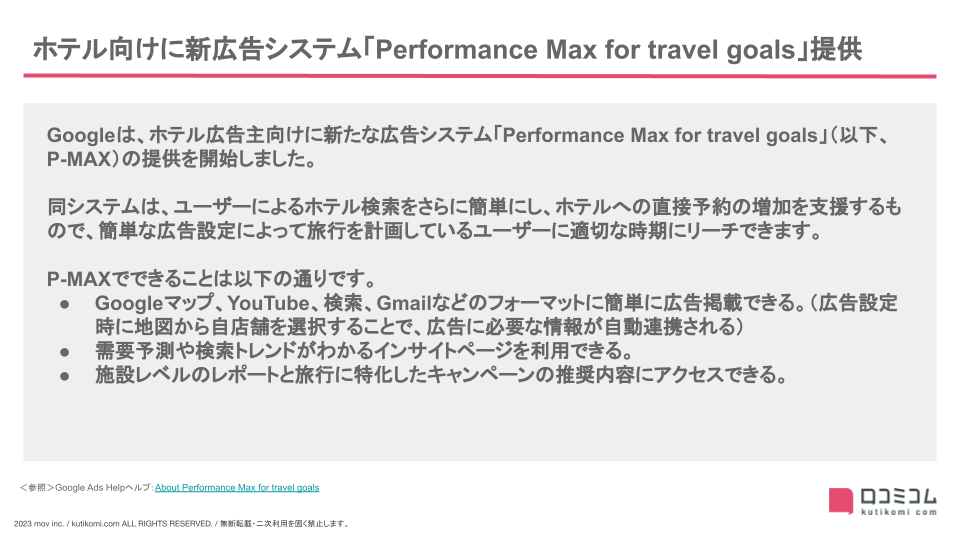 ホテル向け新広告システム「Performance Max for travel goals」提供