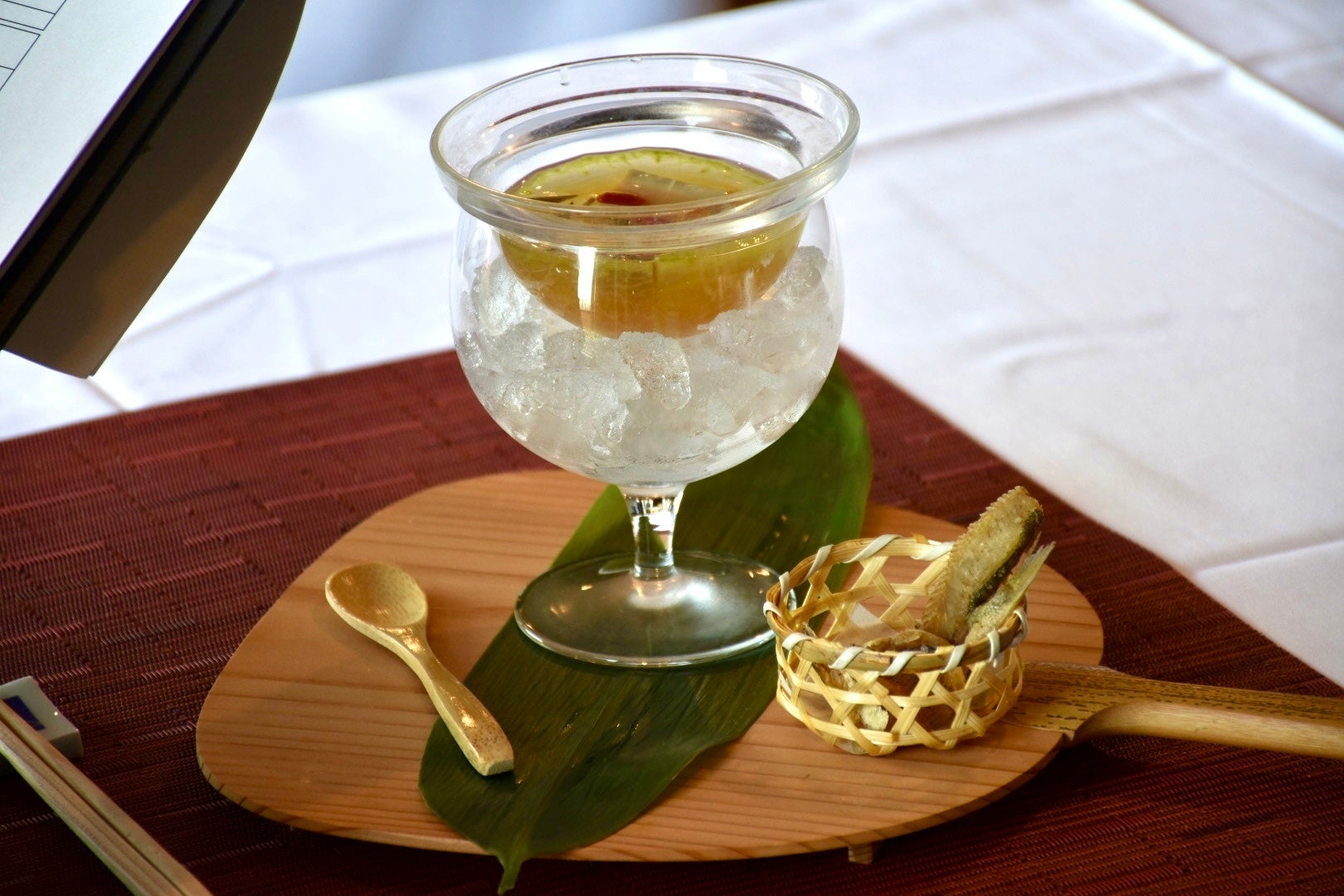 最優秀作品:『山翠楼名物引き上げ湯葉で巻いた鮎の南蛮東寺巻きに鮎の煎餅を添えて』