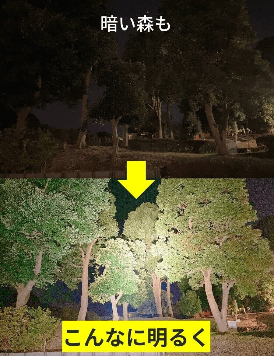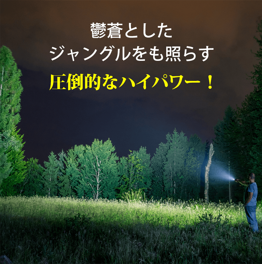 たとえジャングルの暗闇であったとしても一瞬にして昼間のように明るく照らす大光量。