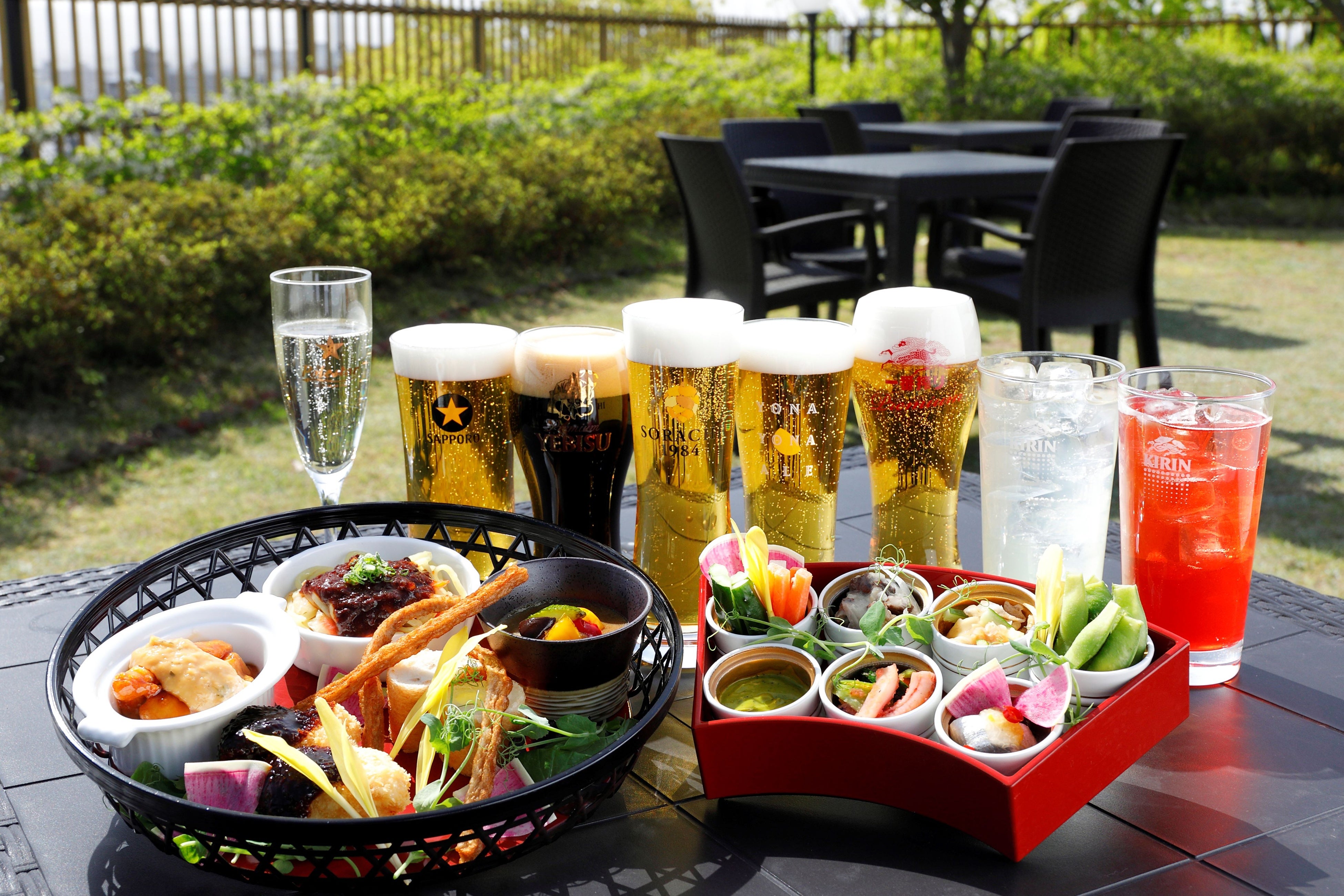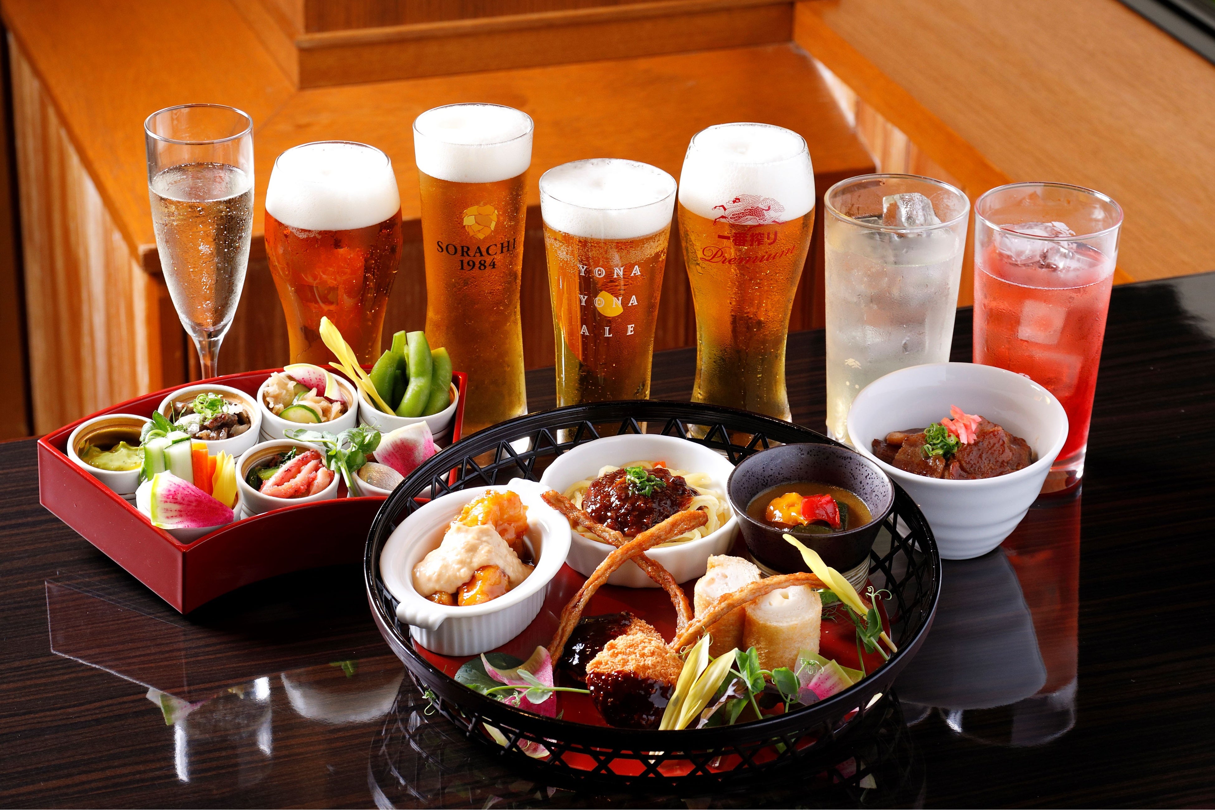ビールは東北産ホップを使用したキリンビール「一番搾りプレミアム」や東京 恵比寿で生まれたサッポロビール「ヱビスプレミアムブラック」など、日本が誇るプレミアムビールをご用意。ほかにも、サッポロビールが北海道で開発したホップ“ソラチエース”を使った「SORACHI 1984」や、長野県 信州に醸造所を構え、ヤッホーブルーイングが作るアメリカンペールエール「よなよなエール」など、日本各地の魅力溢れる樽生ビールもご提供いたします。また、多彩なサワーや、ワイン、ハイボール、ノンアルコールドリンクなど多数そろえており、ビールが苦手な方にも充分お楽しみいただける内容です。
