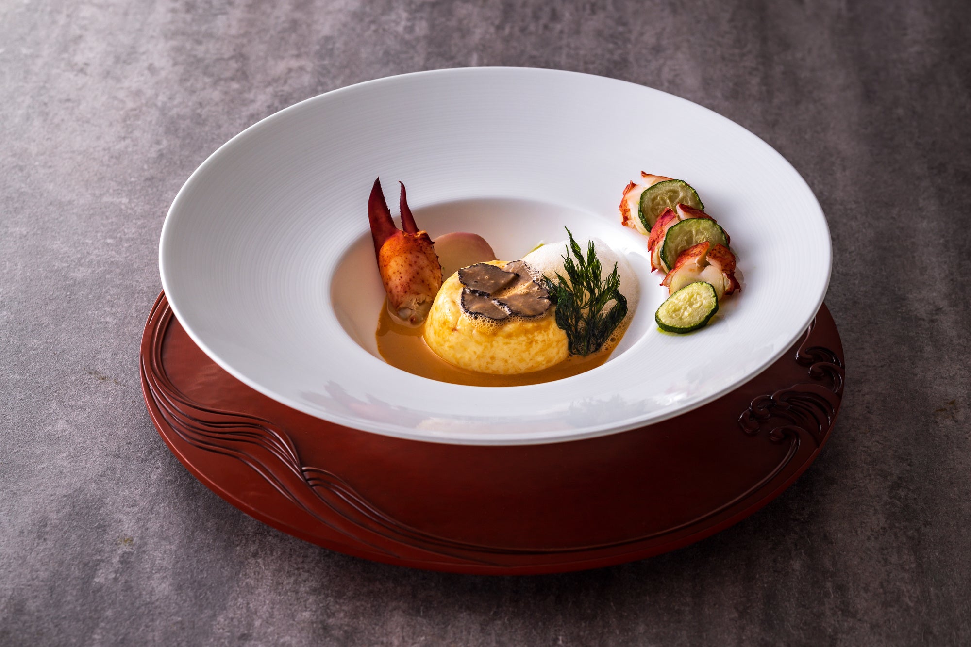 日本の渚100選にも選ばれている魅力的な景勝地・七里ヶ浜。そんな七里ヶ浜のなだらかな丘の緑に溶け込んだ鎌倉プリンスホテルが持つ絶景、それは何といってもホテルから望むことのできる湘南の海や富士山、江の島が一度に楽しめる大パノラマです。今回はその絶景と一緒に鎌倉の文化を楽しんでいただくため、木に彫刻をして、うるしを塗った伝統的工芸品鎌倉彫の老舗「博古堂」の鎌倉彫を器にしたPANORAMAコースをご用意いたしました。