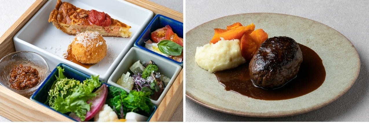 (1)前菜の盛り合わせ (2)選べるメイン(本日のパスタ/薪火グリルハンバーグ/薪火グリルフィッシュプレー/しまね和牛薪ステーキ(+1,000円)(3)選べるデザート(バスクチーズケーキ/抹茶テリーヌ/チェリーパイ/エンゼルフードケーキ)(4)選べるドリンク(コーヒー/紅茶/出雲茶)