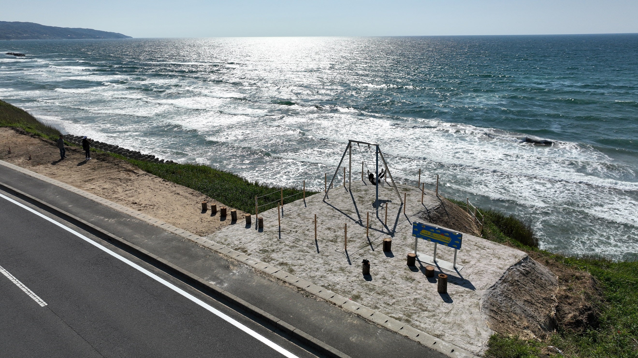 広い空とどこまでも続く水平線を望む「出雲・風のブランコ」はこぎ出すと大空に飛び出すような爽快感を味わえ、お子様だけでなく大人も楽しめるフォトスポットして誕生いたします。
