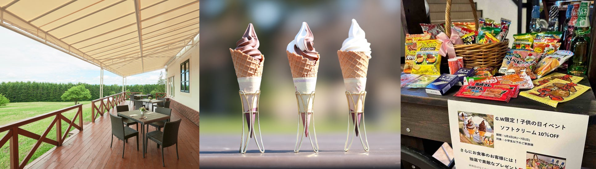 コリーナ自慢の道産ミルクを使ったソフトクリーム(400円)を10%OFFでご提供いたします。