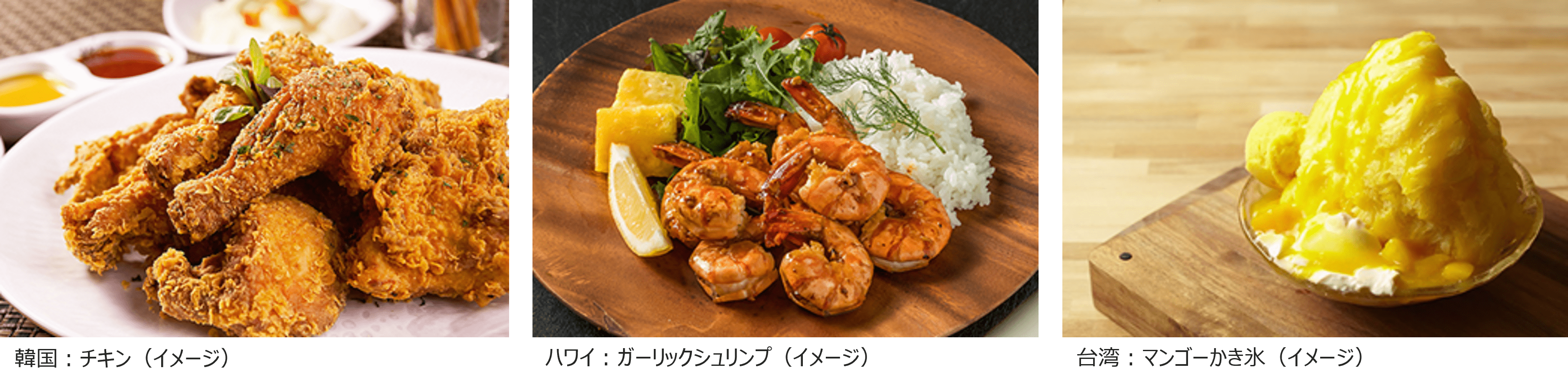 ハワイ・韓国など5つの地域の名物料理をお楽しみいただけます。