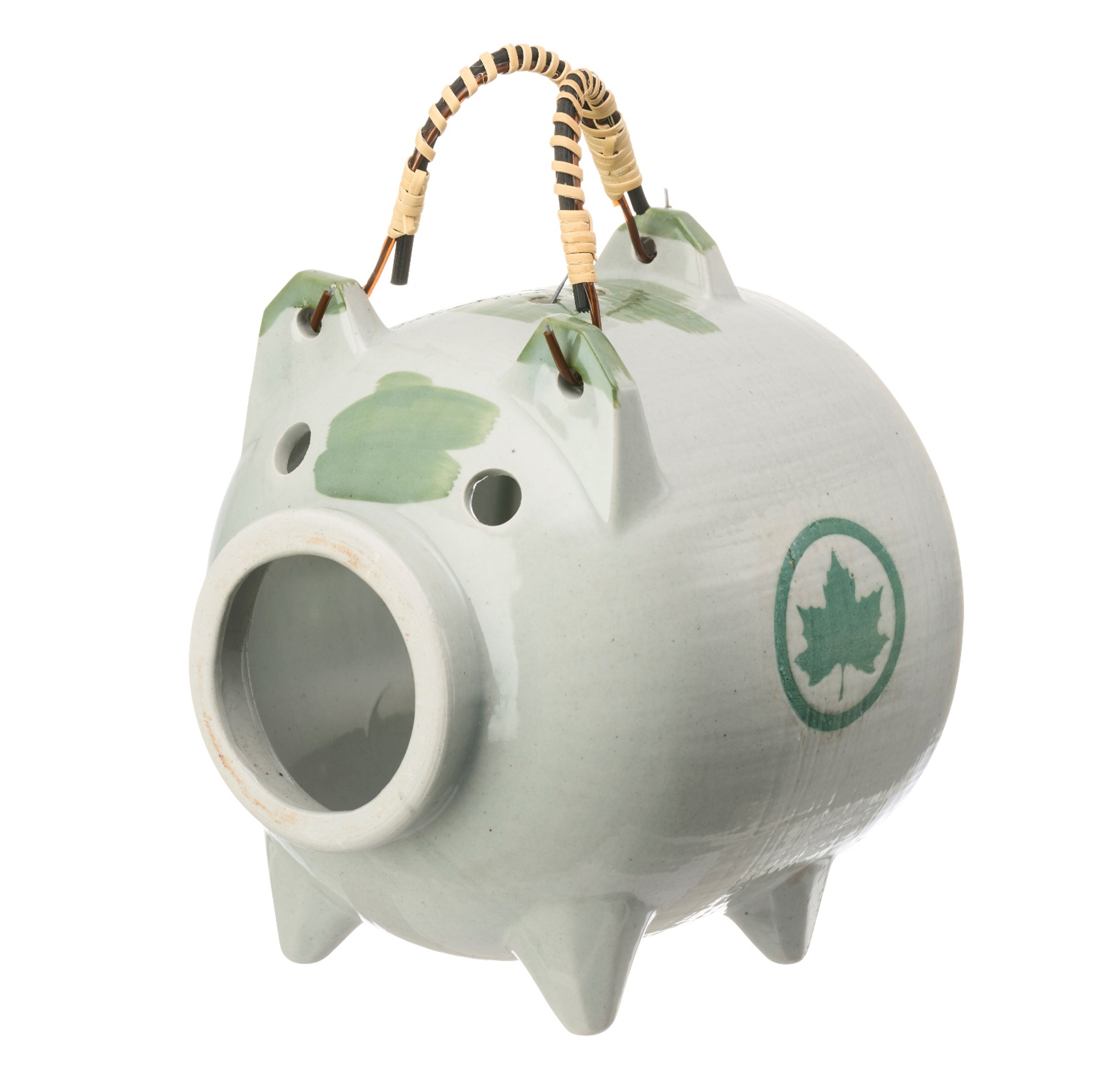 中のフックに市販の蚊取り線香を引っかけるだけで簡単に取り付けが完了し、使用する蚊取り線香に合わせて針金の長さや角度を調節することもできます。上部にはハンドルが付いているので持ち運びにも便利です。金属のハンドルは、籐(とう)をつるのように巻き付けた美しいデザインのほか、ぶたの表情や輪郭、模様なども職人の手でひとつひとつ丁寧に作られ、見た目にもたこだわっています。