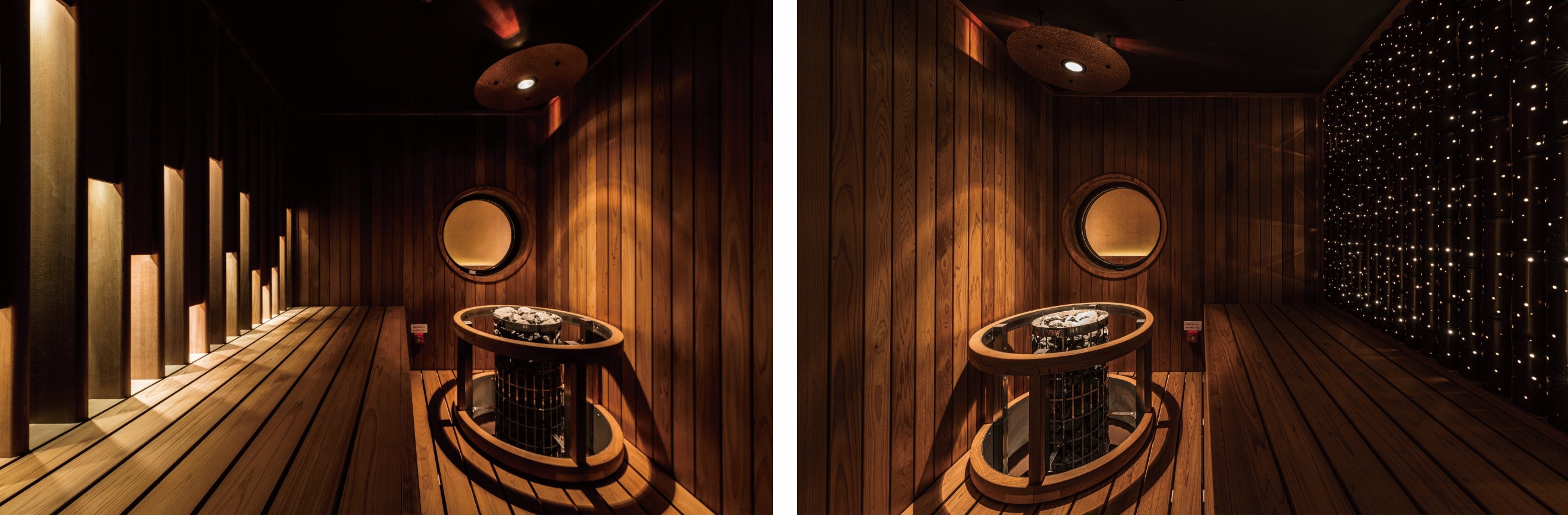 サウナ室の壁から漏れる無数の光が、とても幻想的な2部屋です。