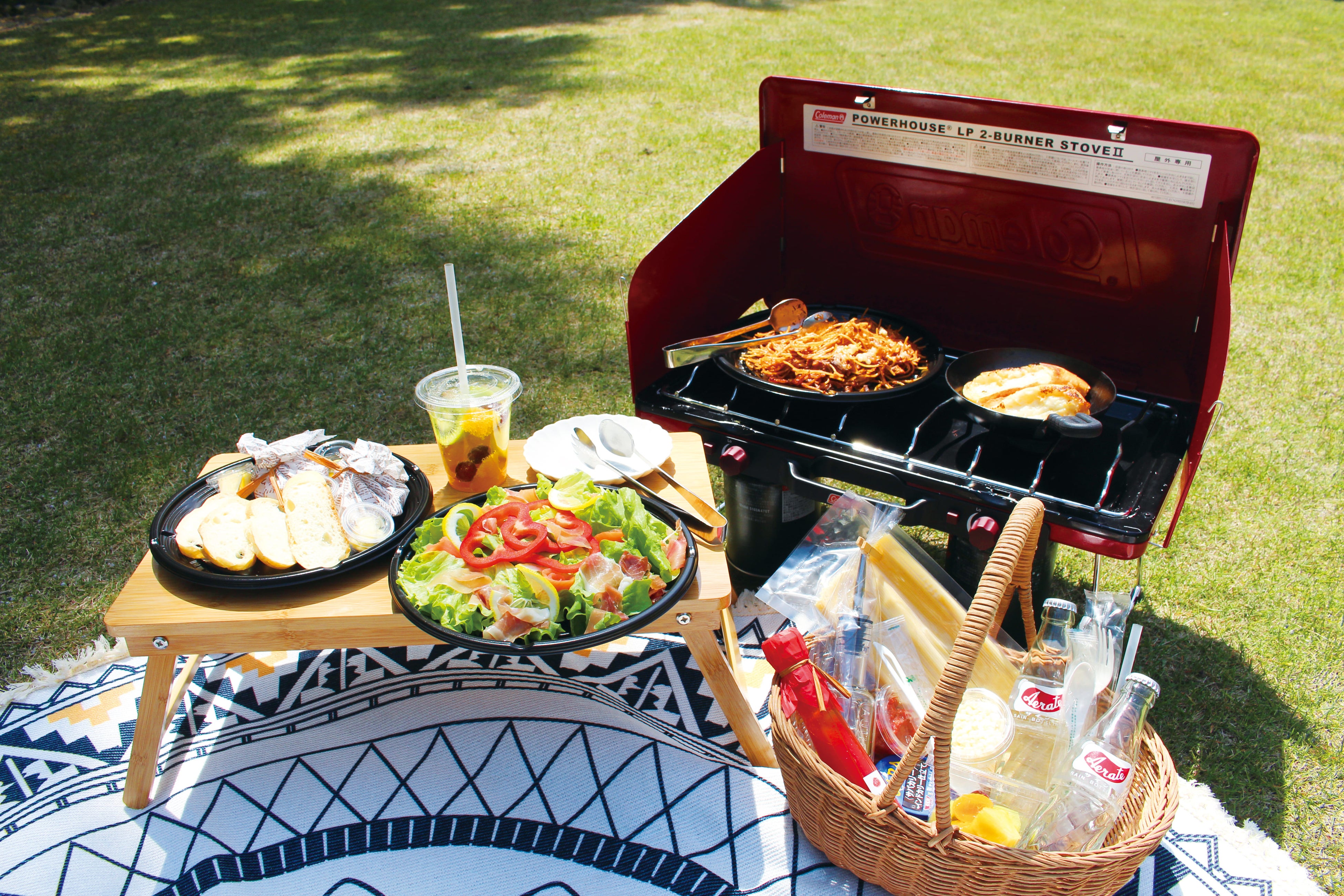 ・セット内容:お手軽キャンプ飯セット(パスタ/サラダ/バケット)・スイーツセット(フレンチトースト/フルーツソーダ)・デイキャンプピクニックセット一式